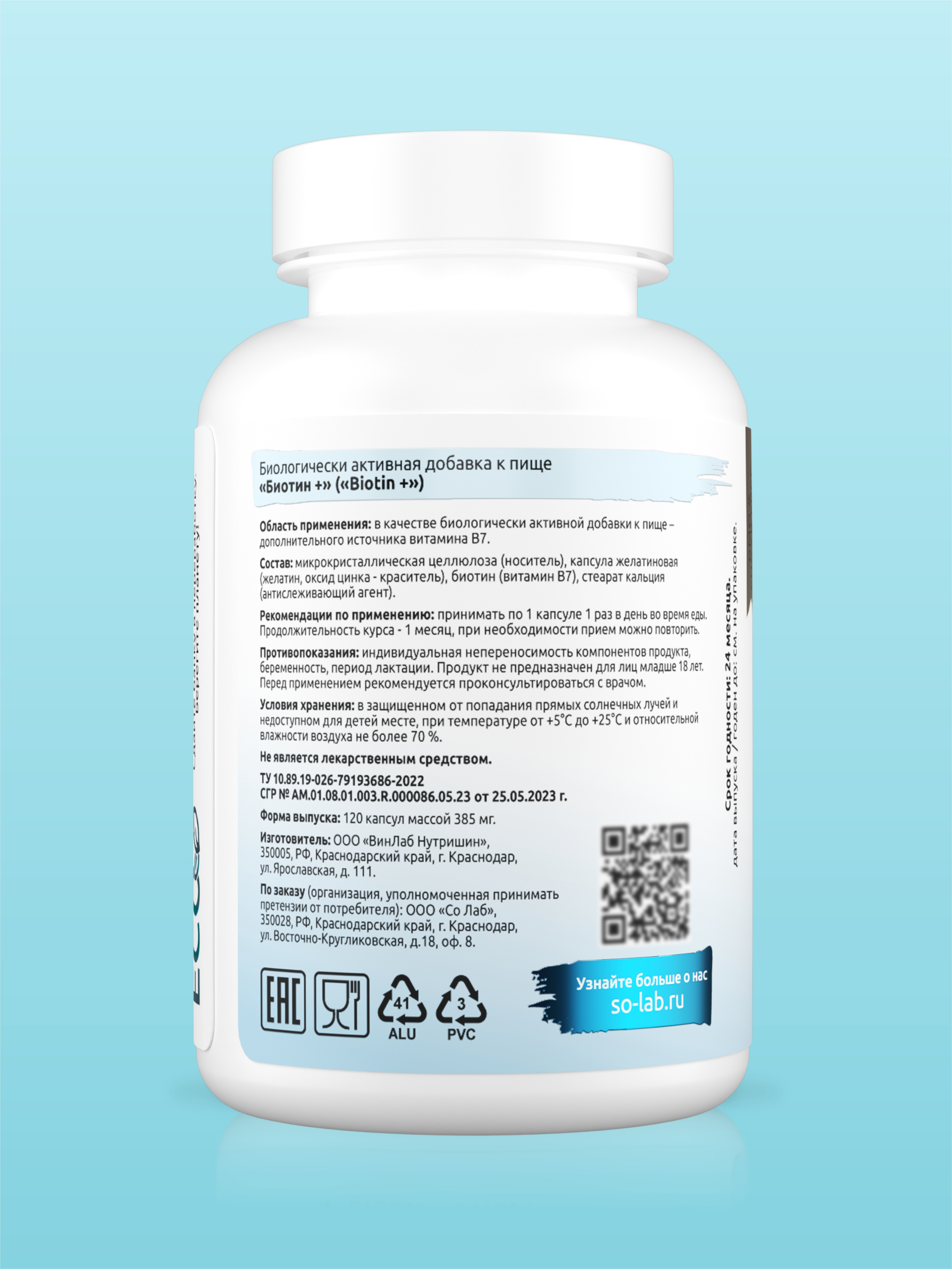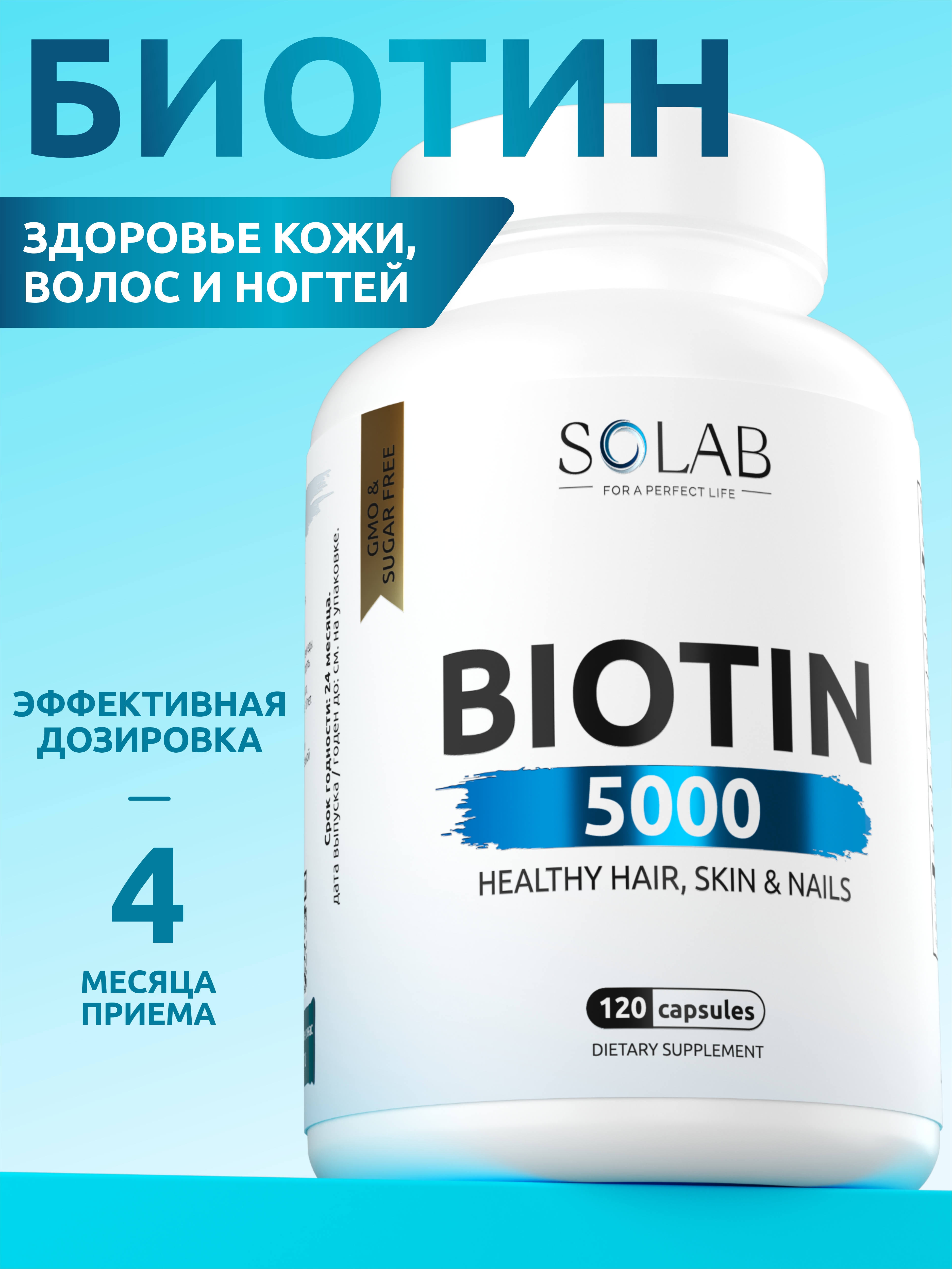 SOLAB / Биотин 5000 мкг, 120 капсул