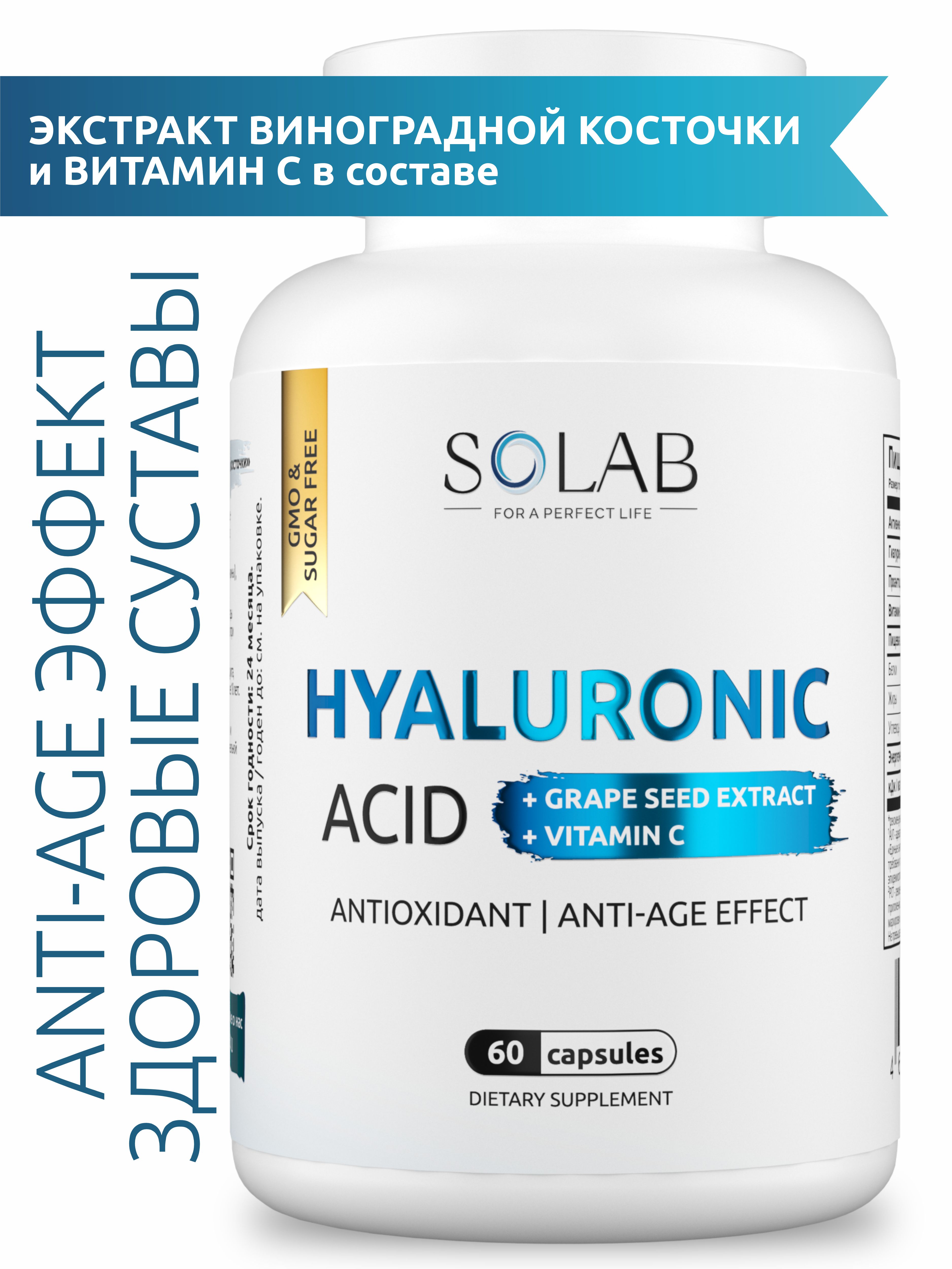 SOLAB / Гиалуроновая кислота с Витамином С и экстрактом виноградной косточки, 60 капсул