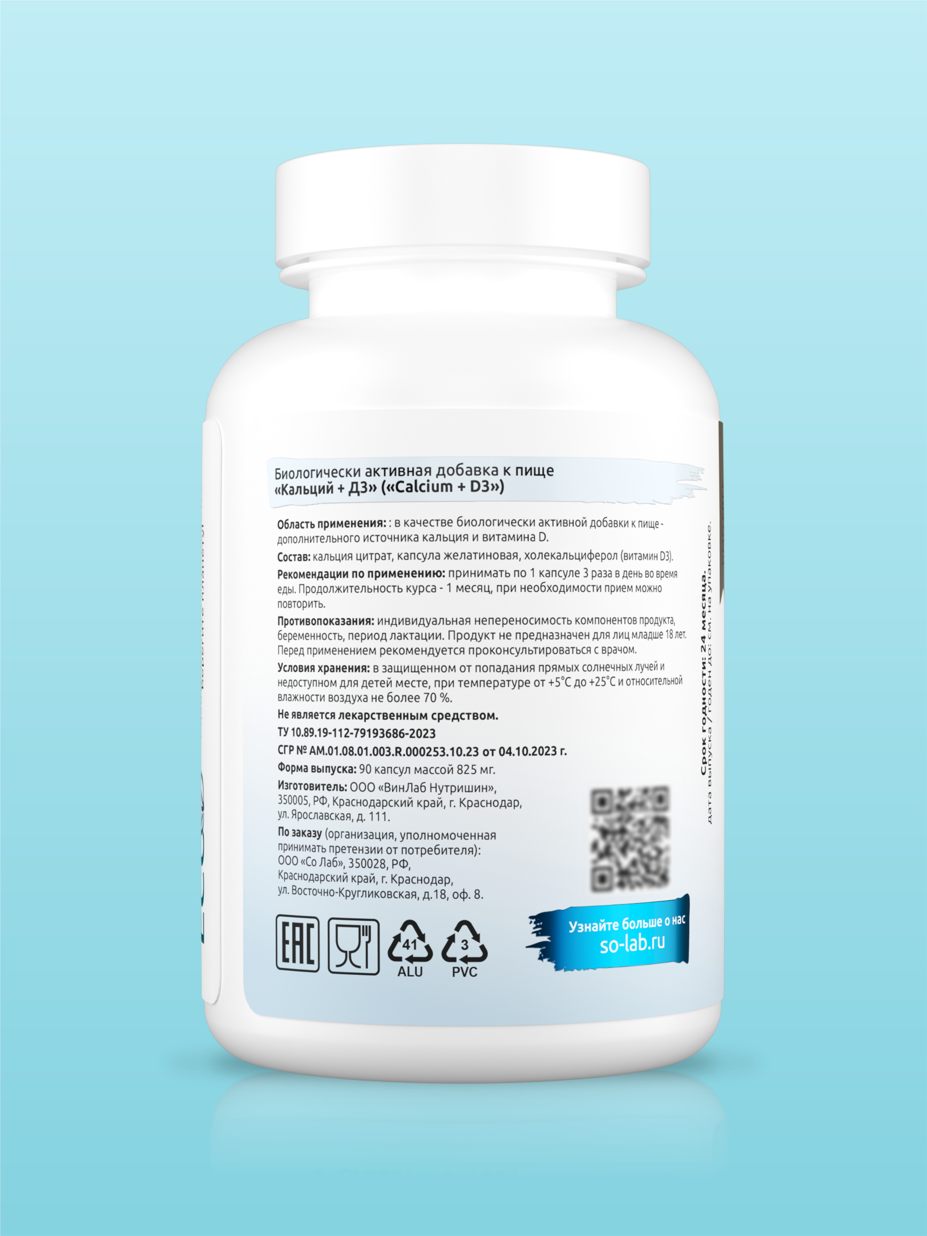 SOLAB / Кальций + витамин D, 90 капсул