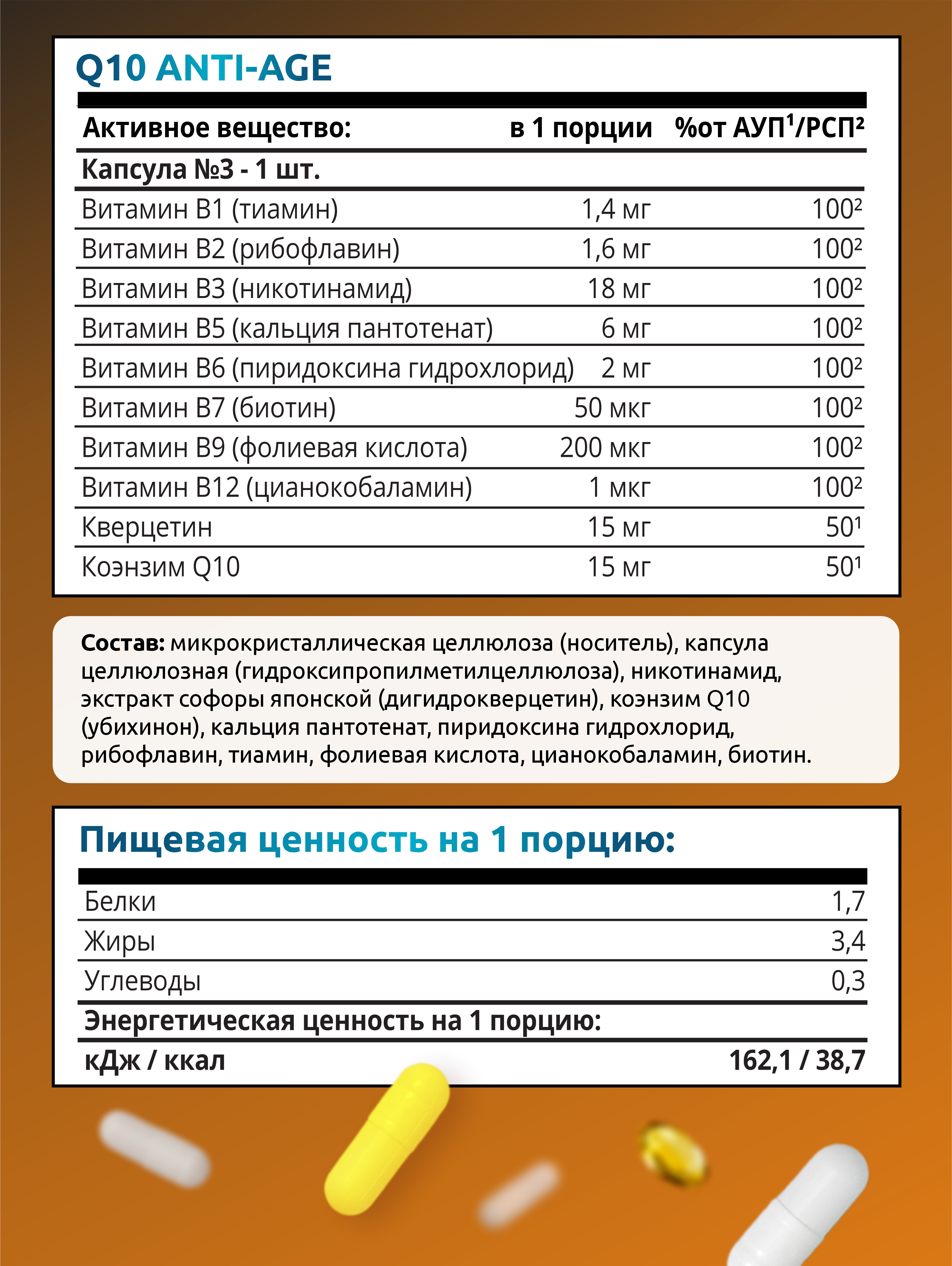 Q10 anti-age с кверцетином и витаминами группы В (1 капсула)