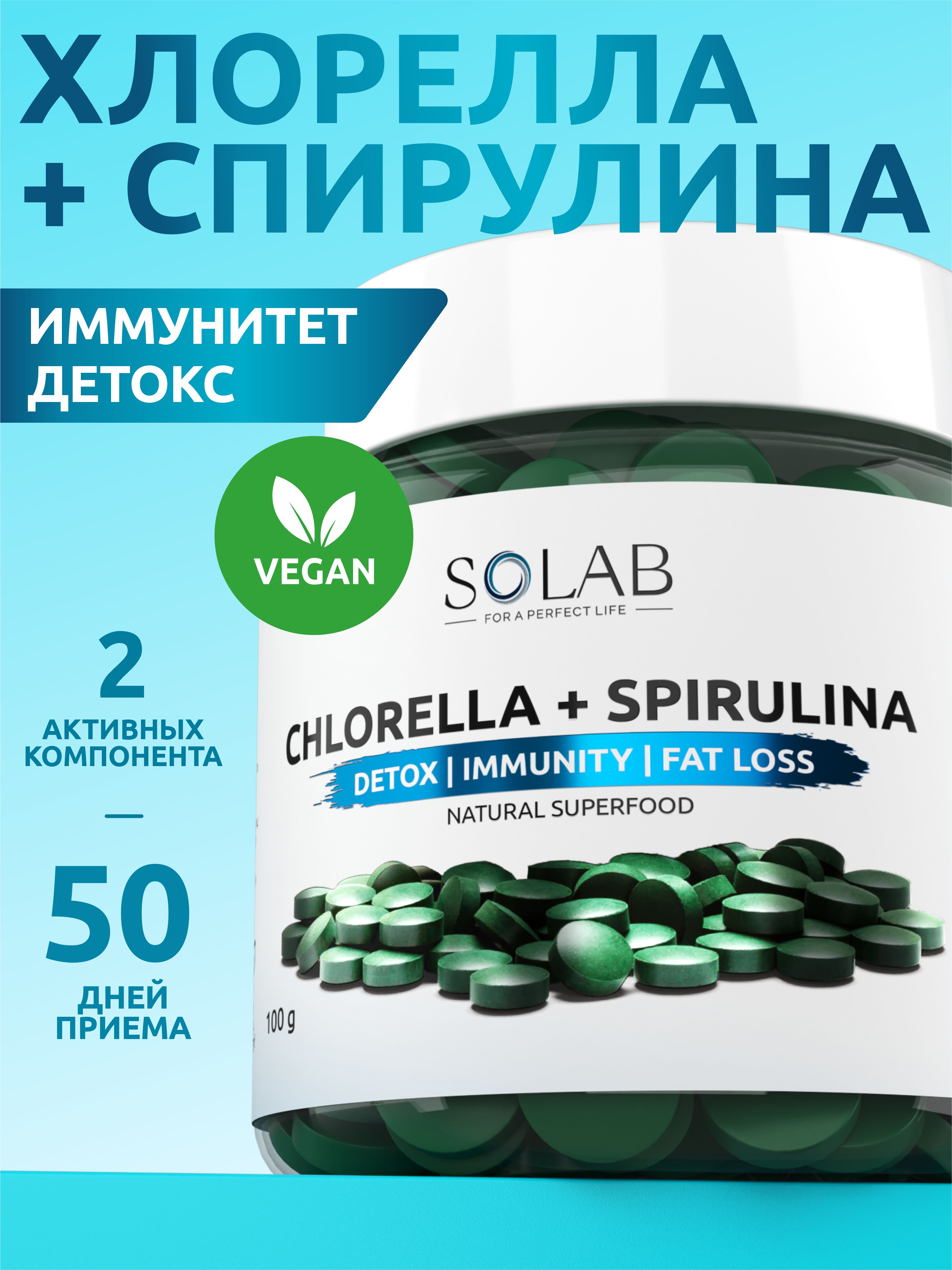 SOLAB / Хлорелла + спирулина в таблетках, 100 грамм