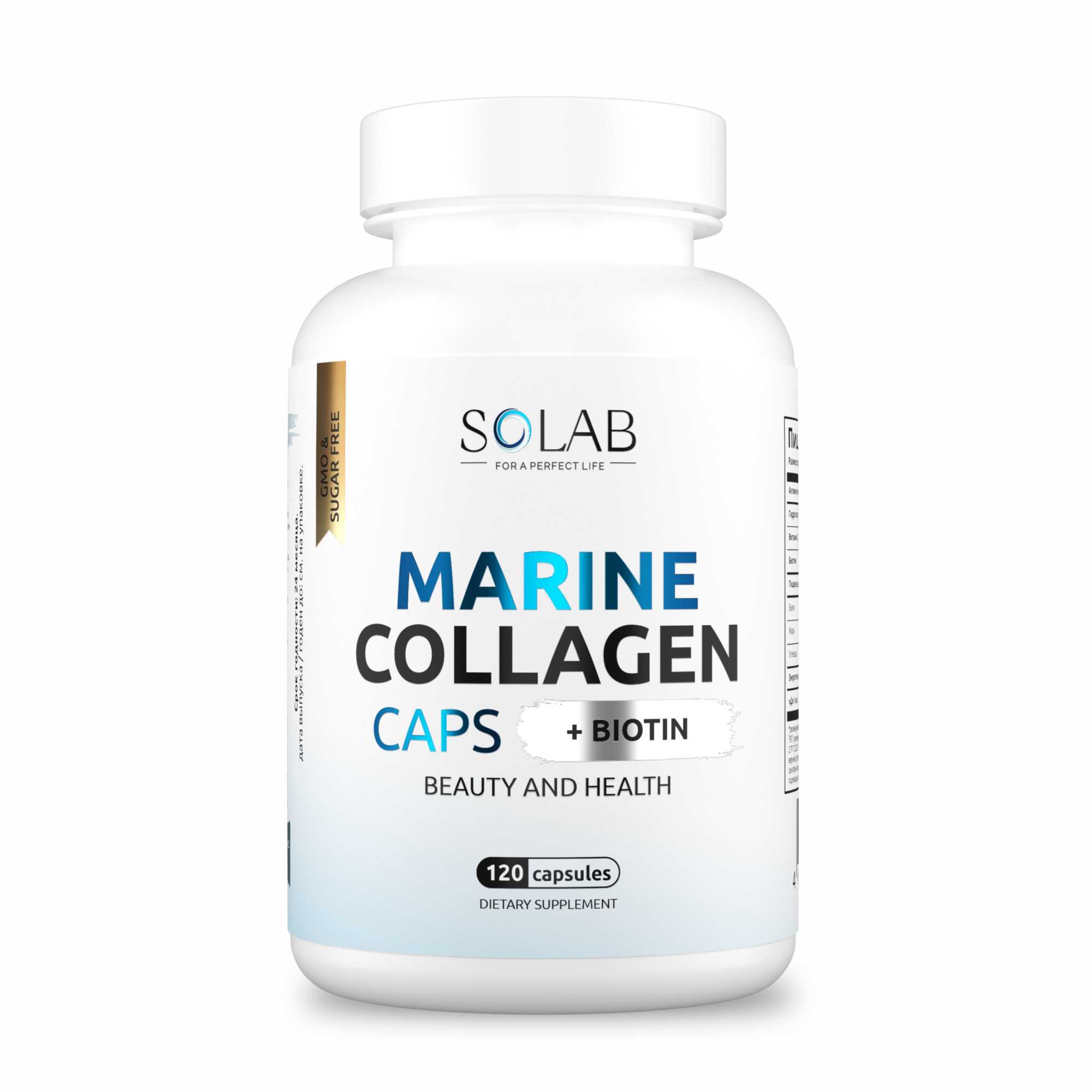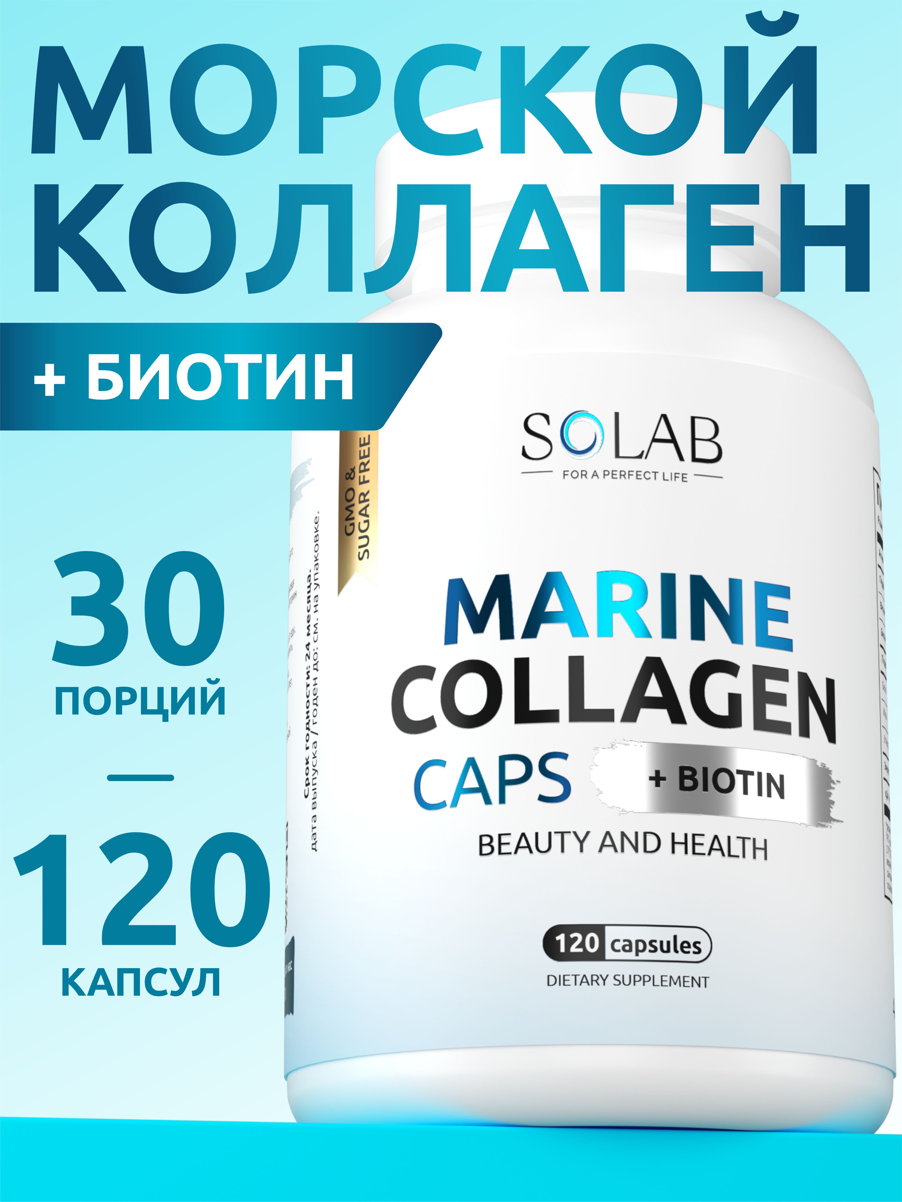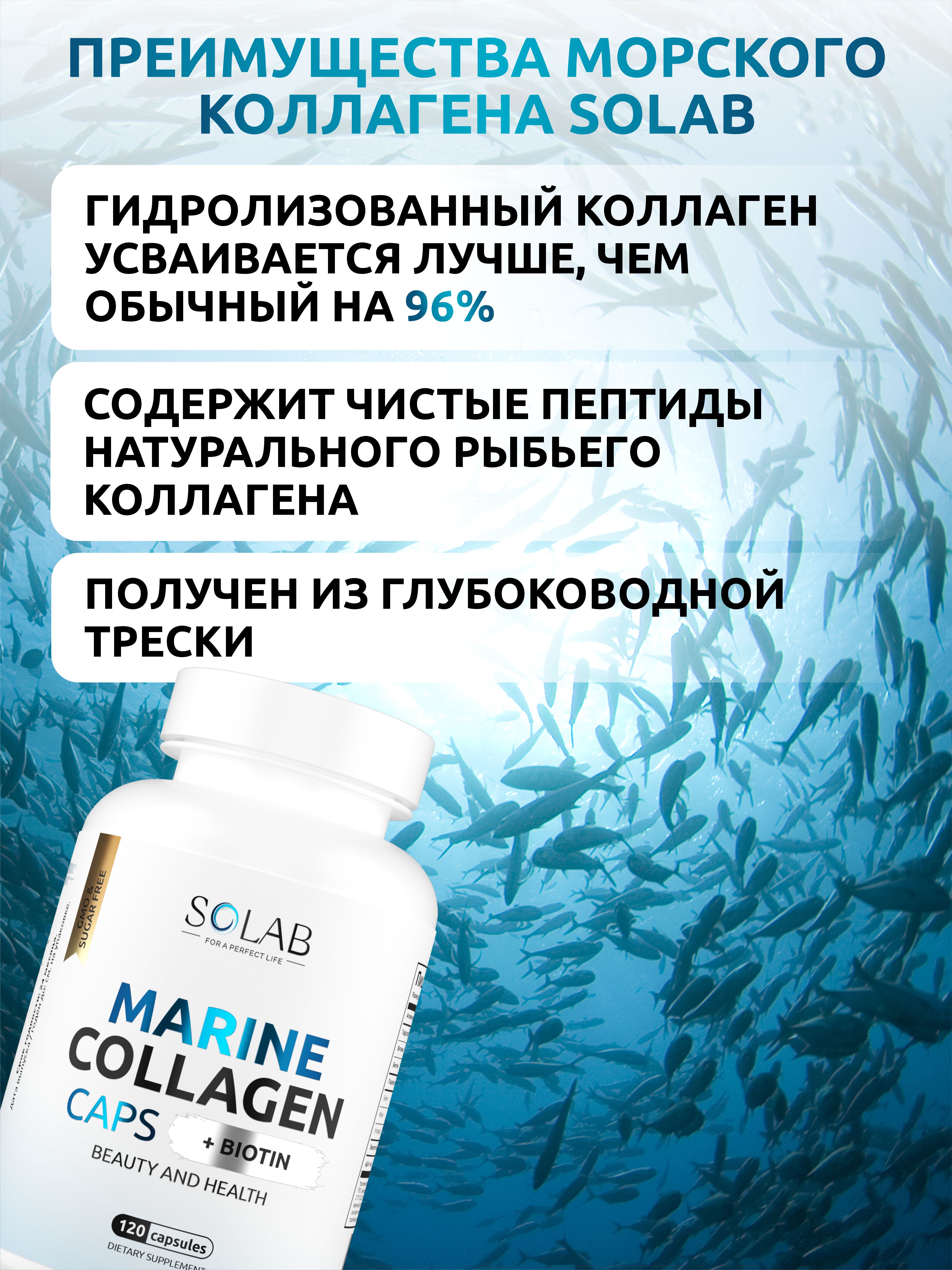 SOLAB / Коллаген морской в капсулах + Витамин С + Биотин, 120 капсул
