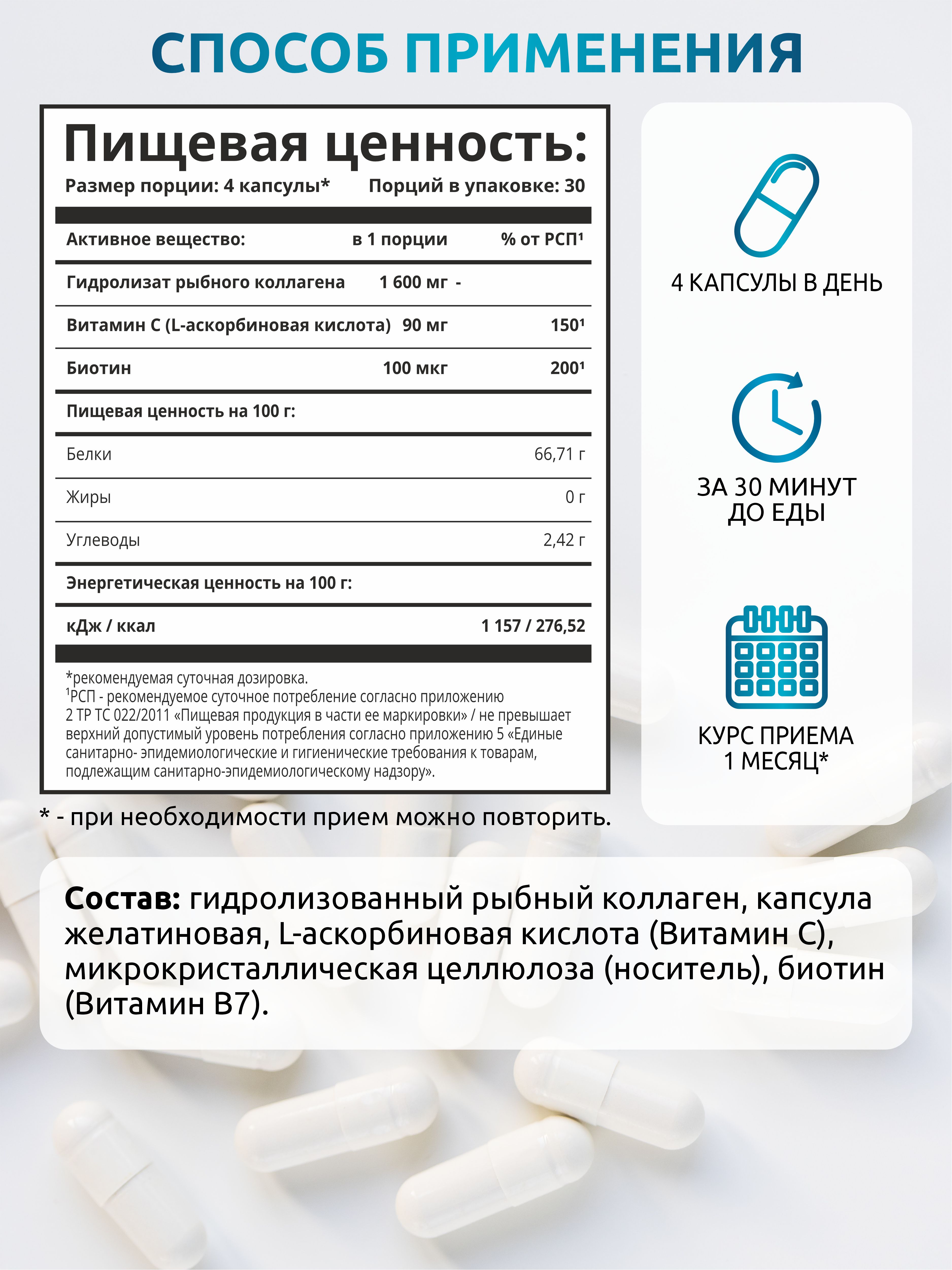 Нехватка marine collagen влечет за собой выпадение волос, тусклый цвет лица, появление морщин и пигментных пятен. Регулярный прием гидролизованного рыбного коллагена обеспечит укрепление волос и поможет замедлить процессы старения организма и сохранит вашу красоту и здоровье.