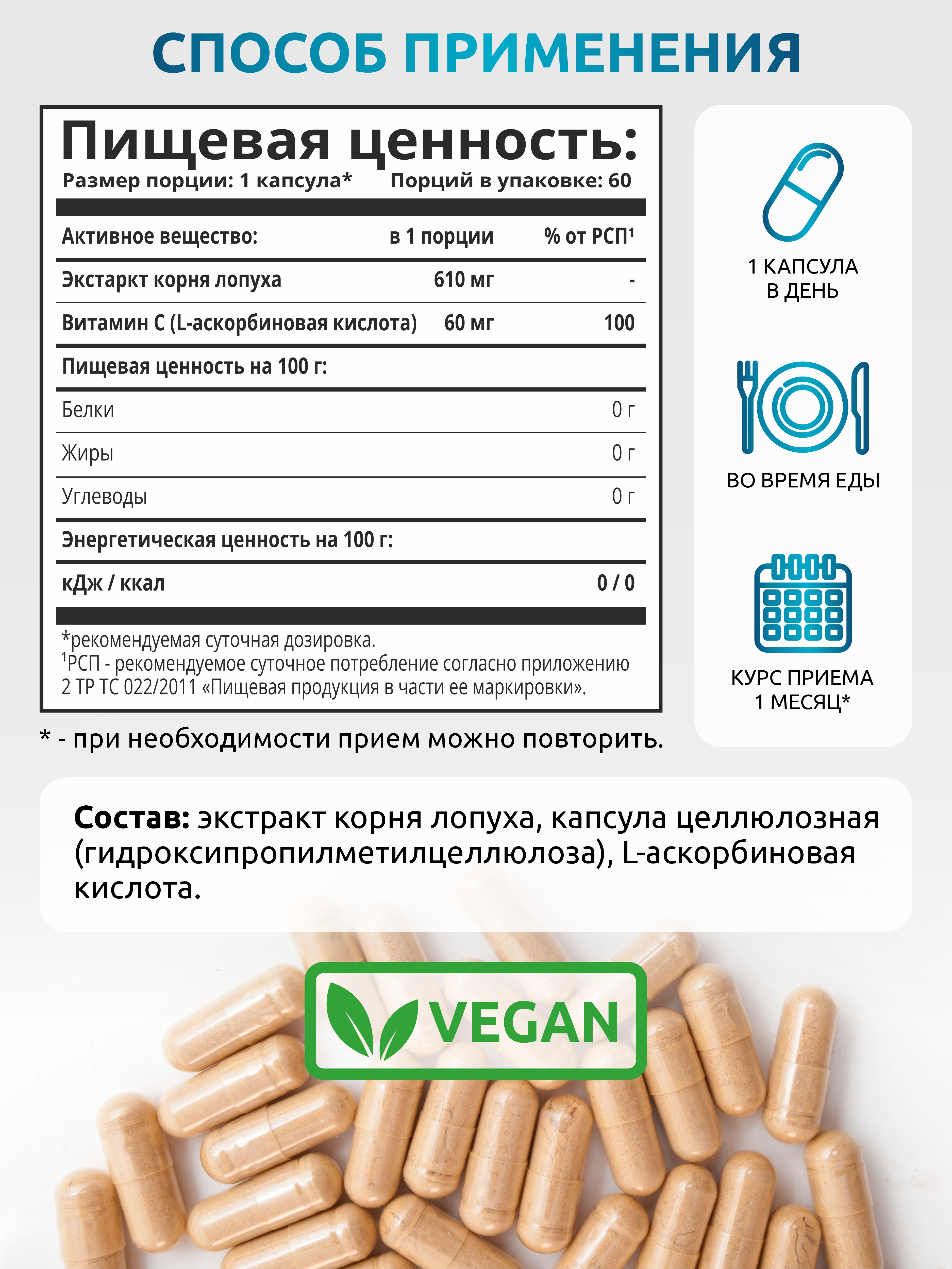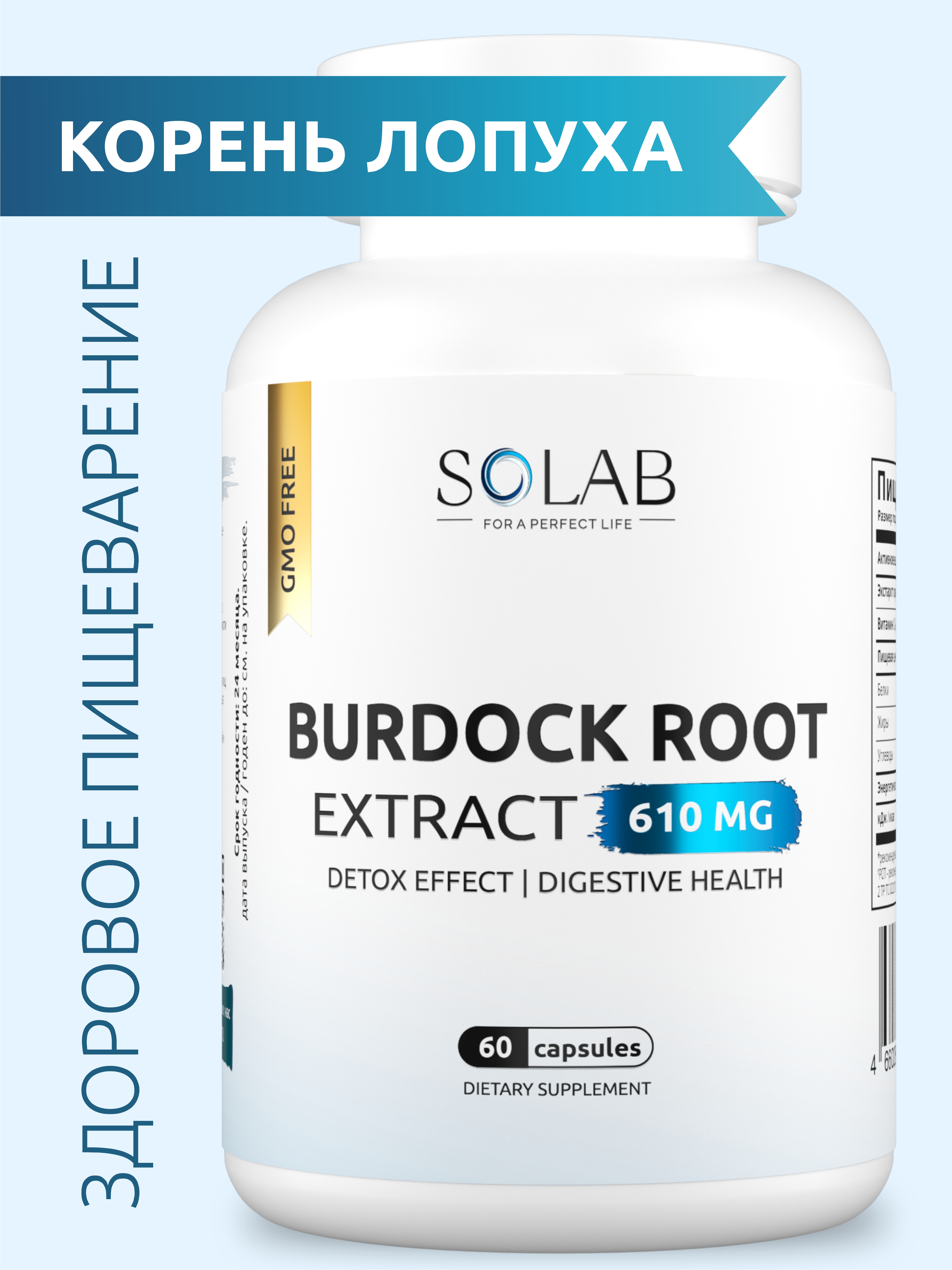 SOLAB / Корень Лопуха экстракт 800 мг, 60 капсул