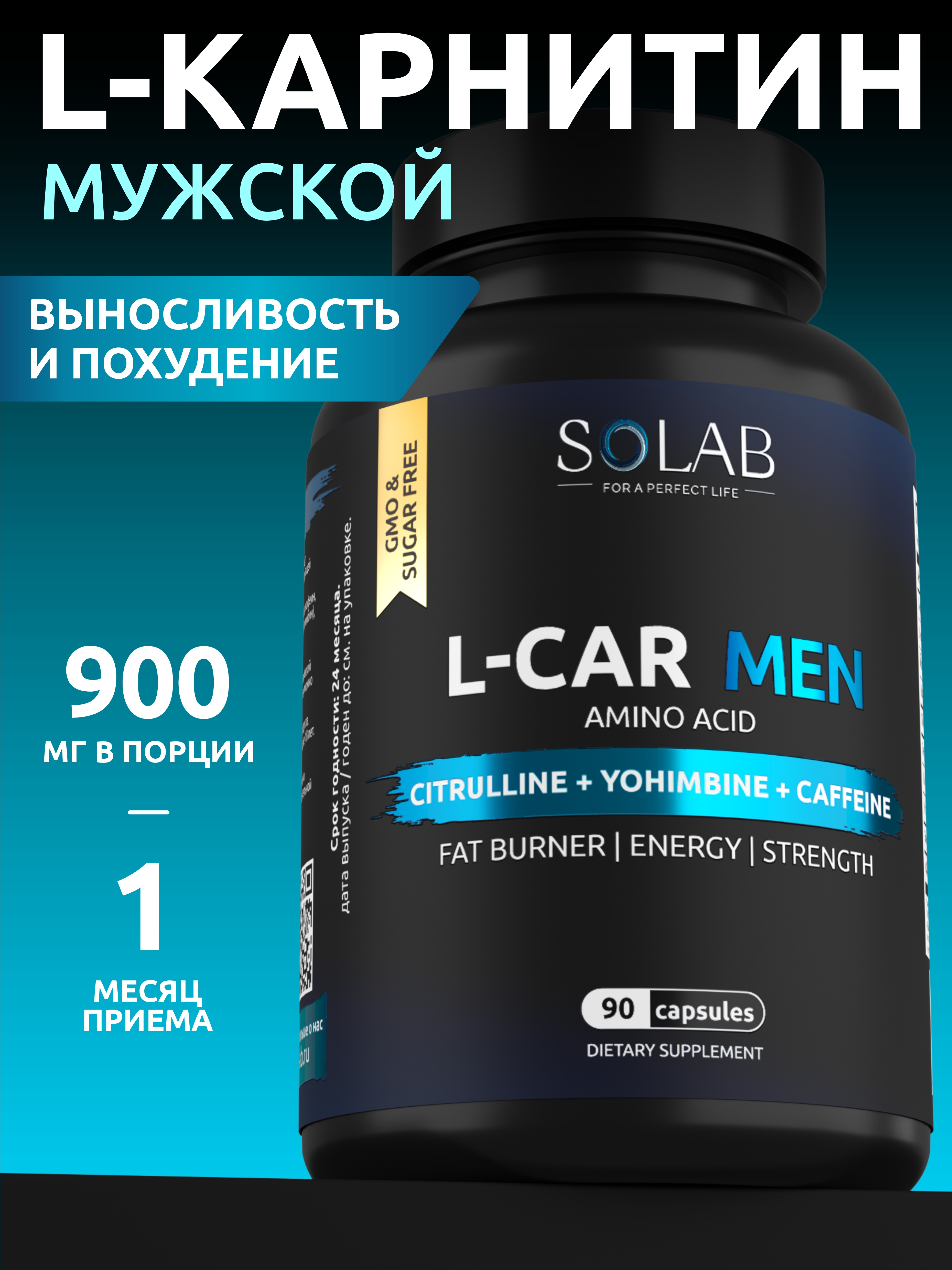 SOLAB / L-карнитин для мужчин. 90 капсул