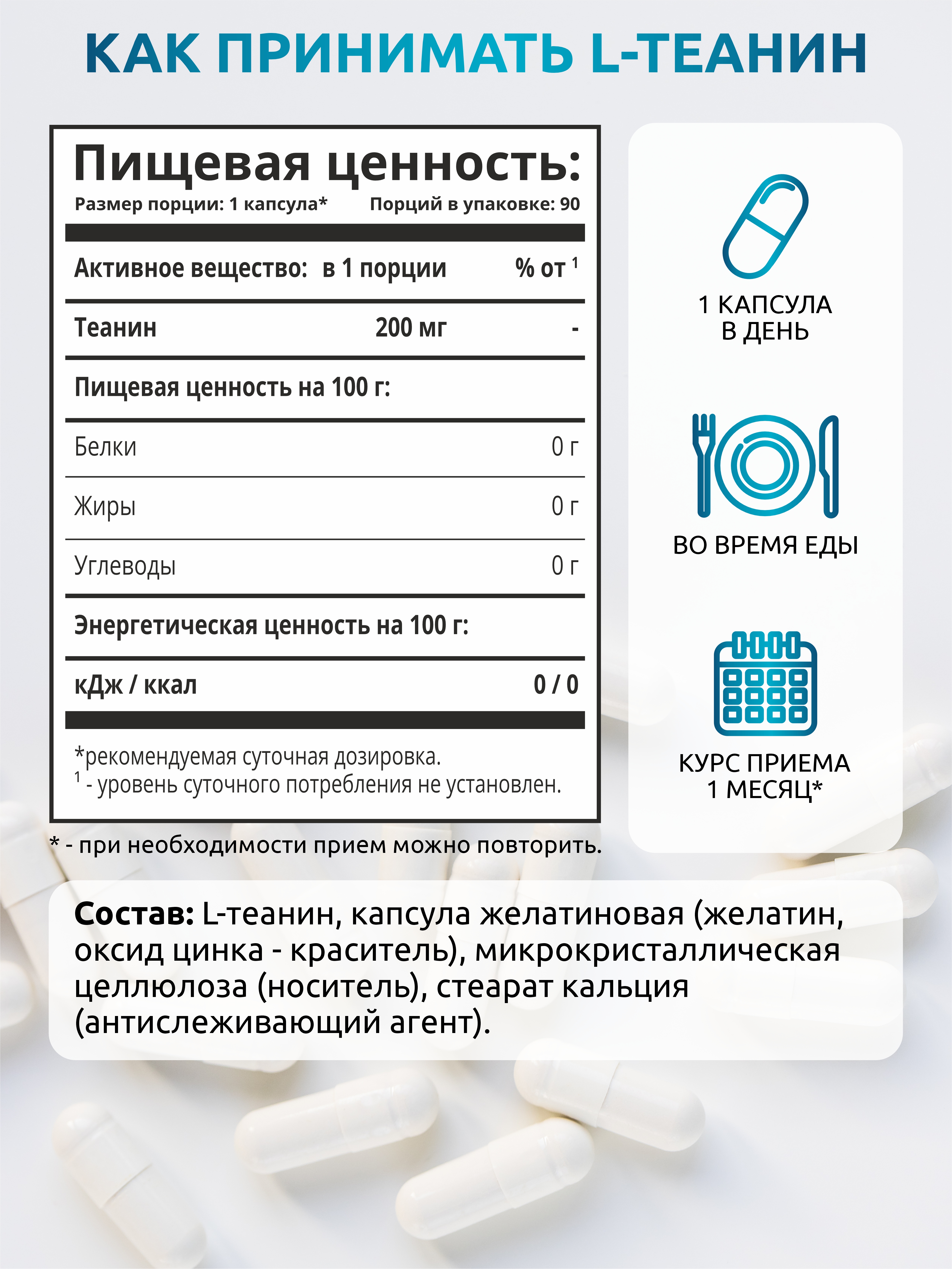 L-theanine обладает нейропротекторными свойствами и способен защищать клетки мозга от повреждений. Улучшает концентрацию внимания, повышает способность к запоминанию и обучению.