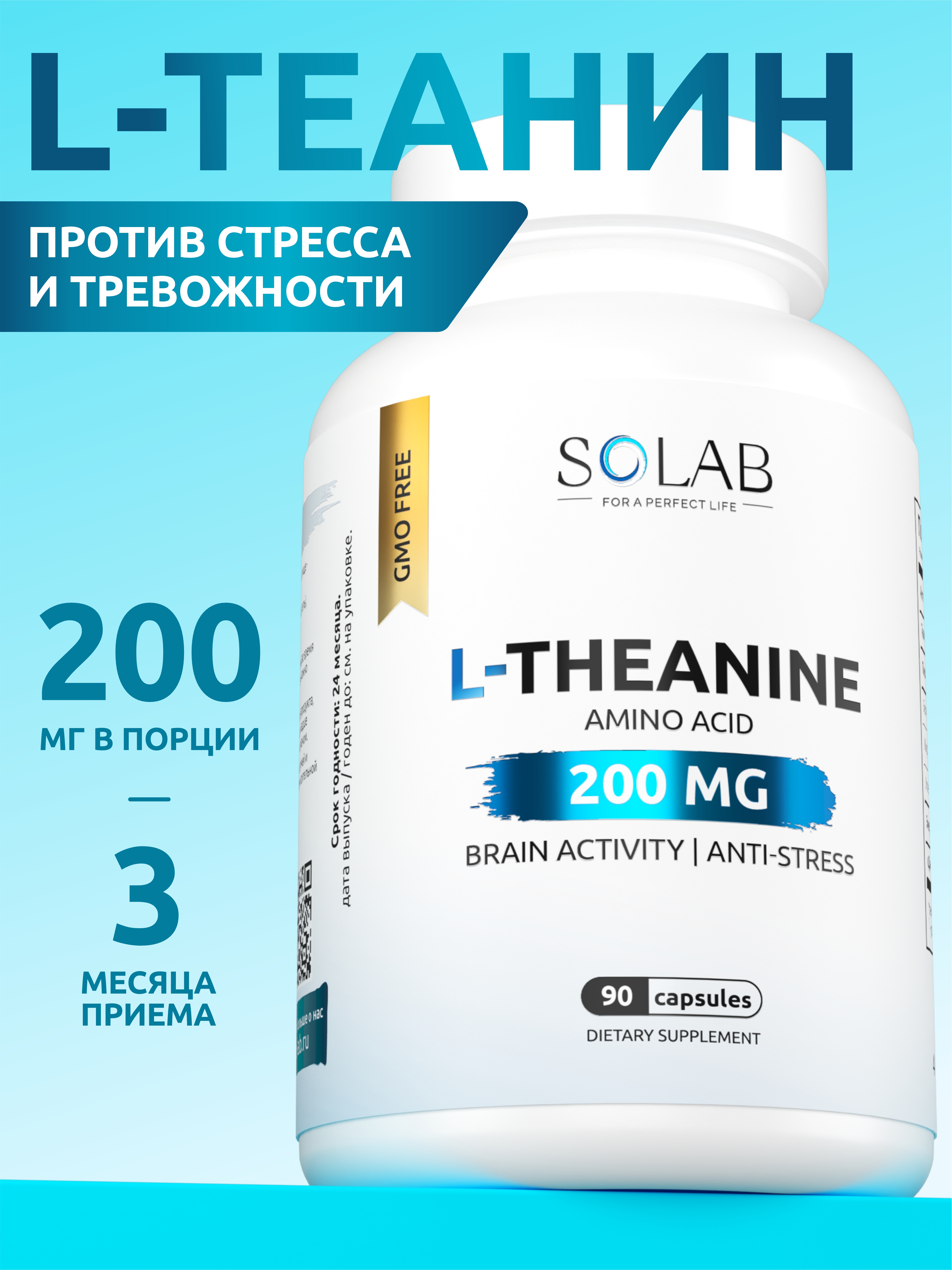 SOLAB / L-теанин 200мг, 90 капсул