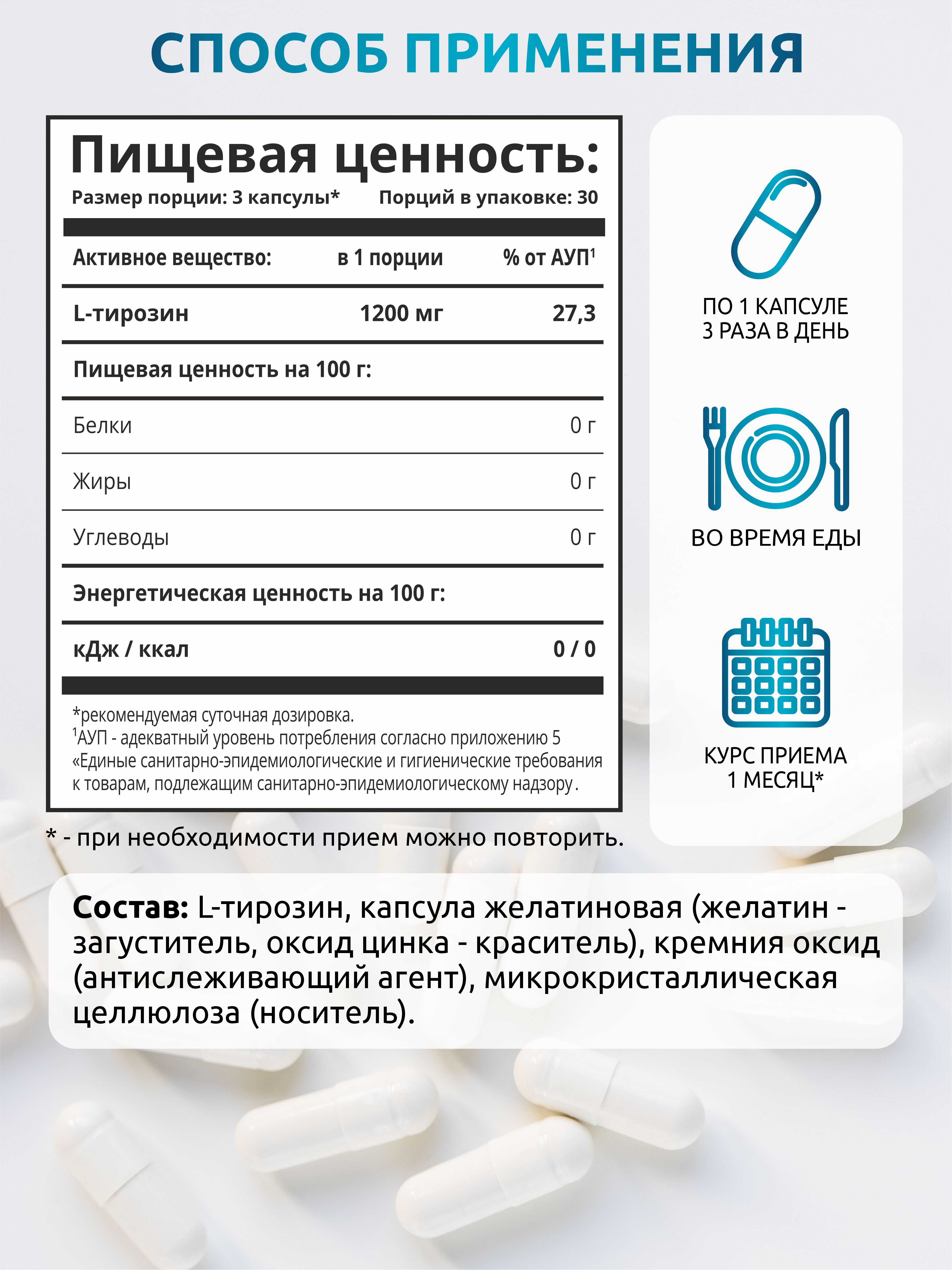 Экспериментально установлено, что недостаток этой аминокислоты в организме может приводить к ухудшению памяти и внимания, головным болям, сонливости и мышечной слабости. Регулярный прием БАДа позволит снизить проявление этих неприятных симптомов.