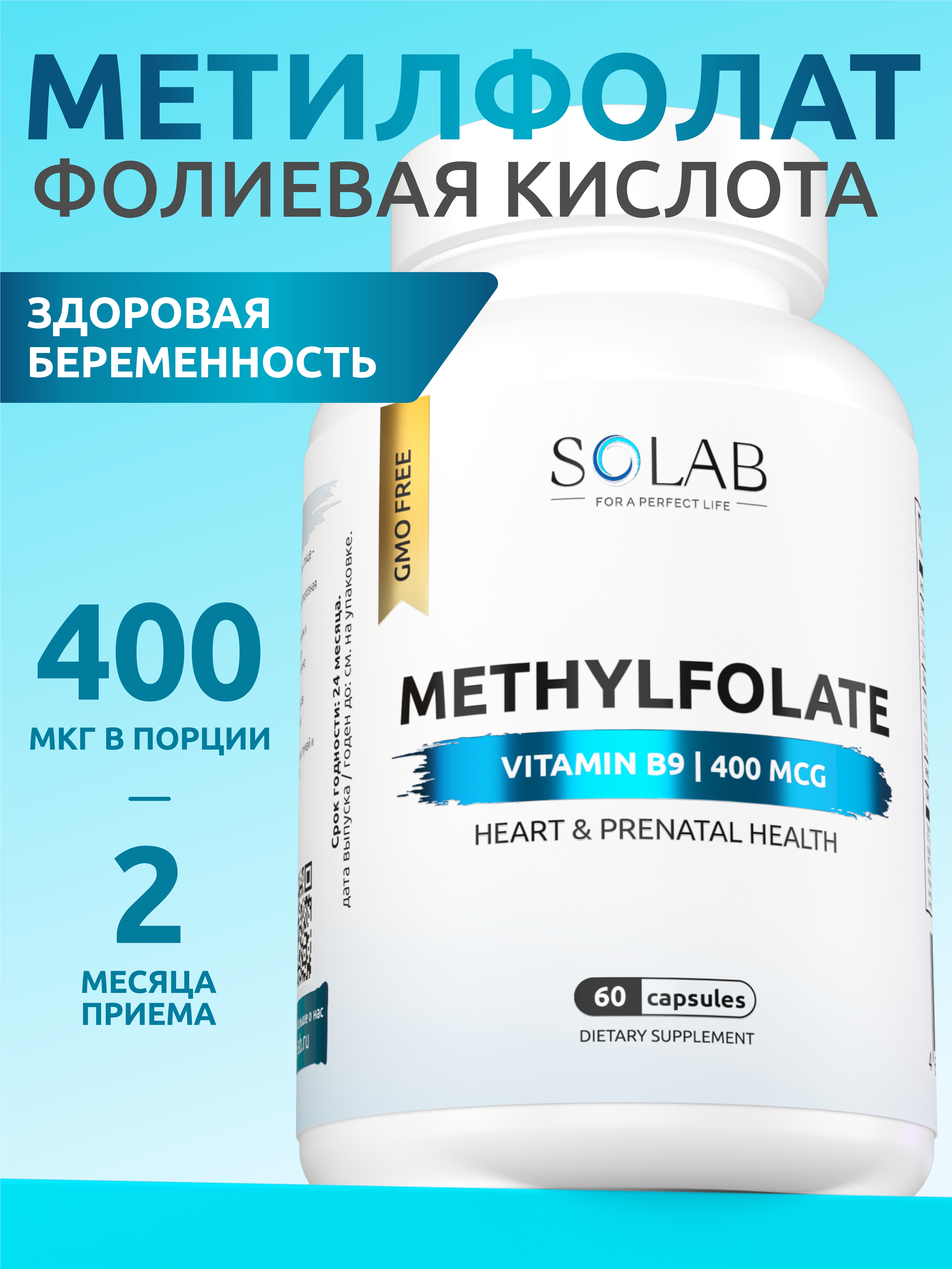 SOLAB / Метилфолат 400 мкг, 60 капсул