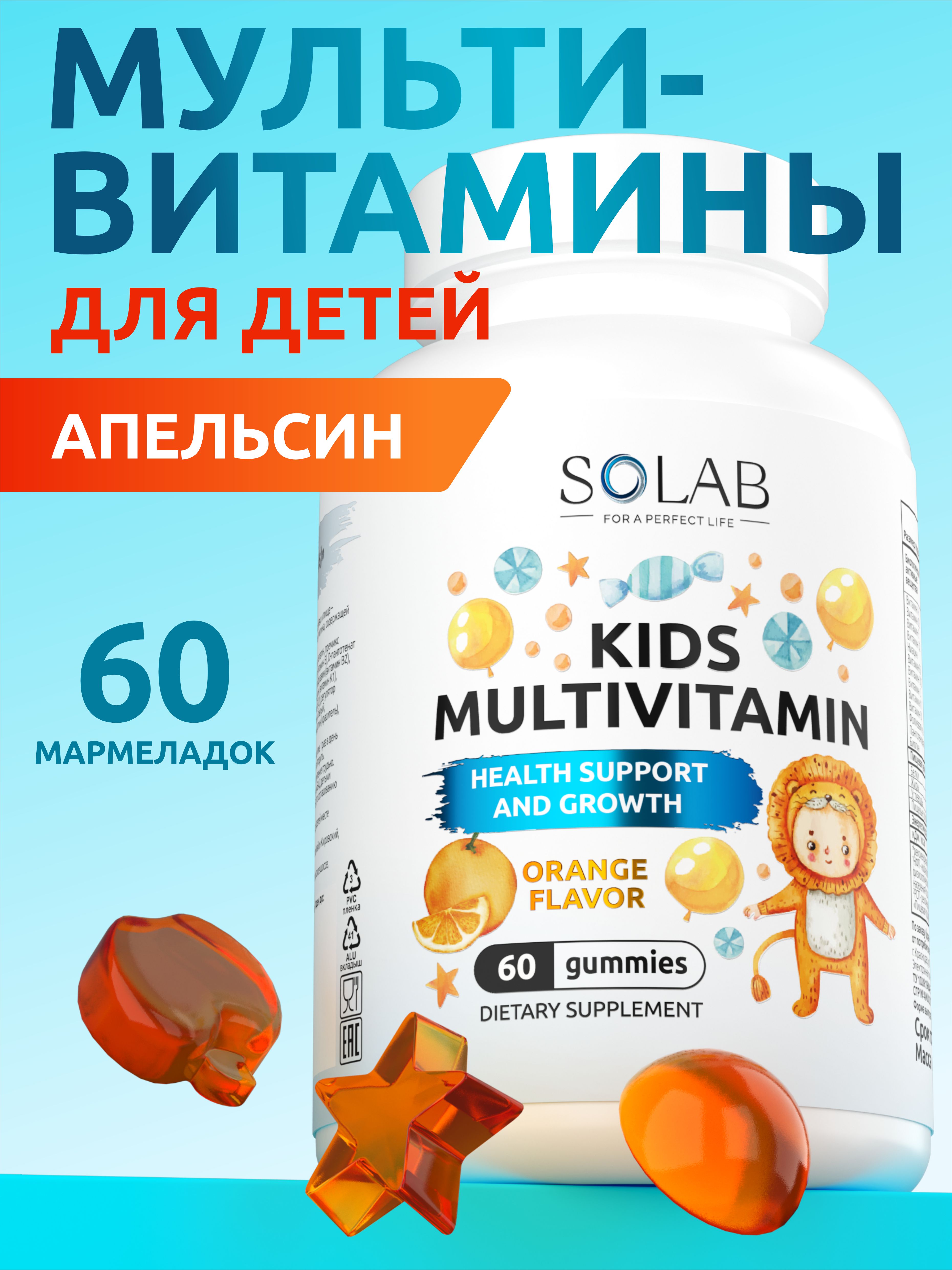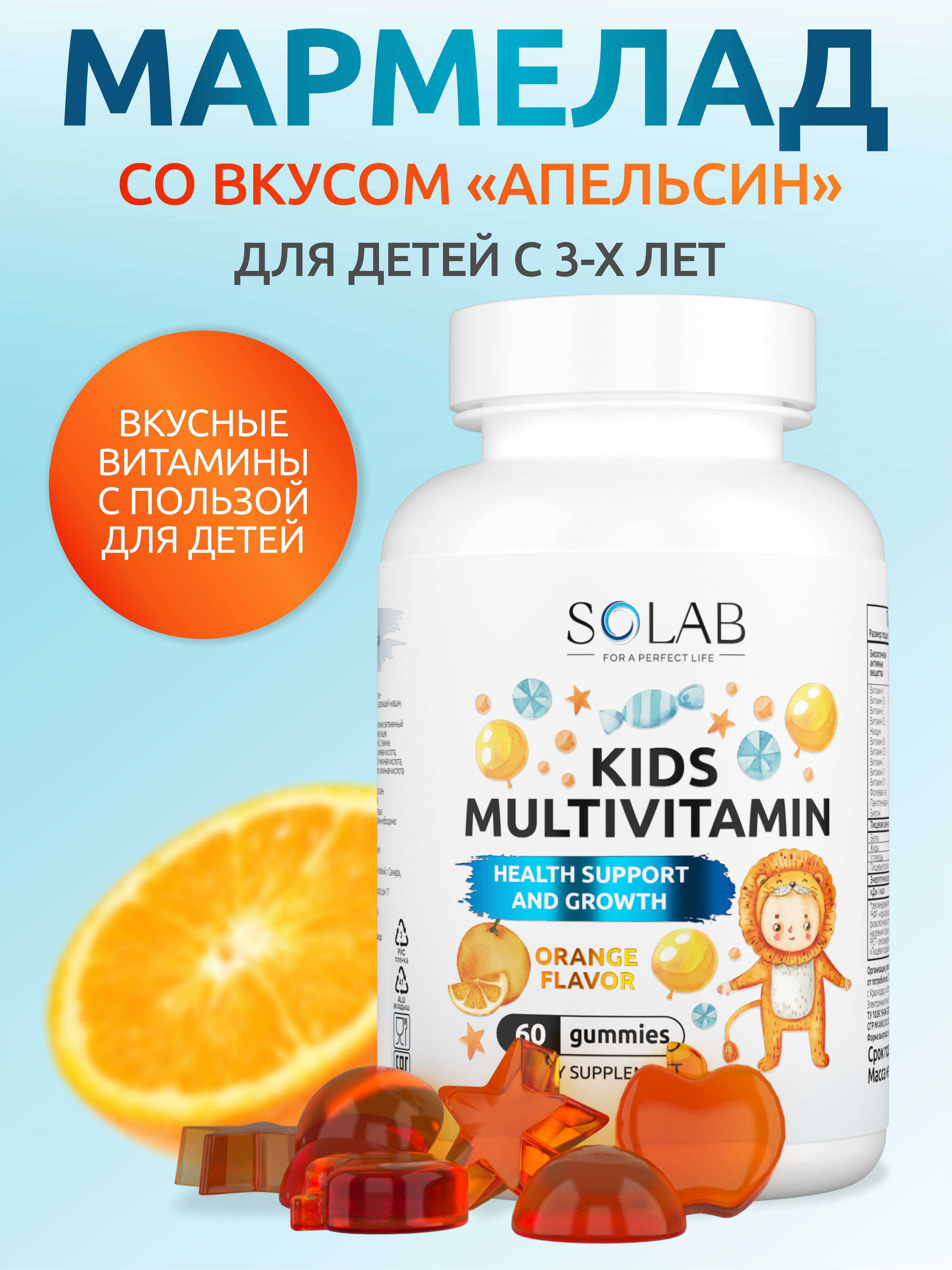 SOLAB / Мультивитамины KIDS Апельсин, 60 мармеладок