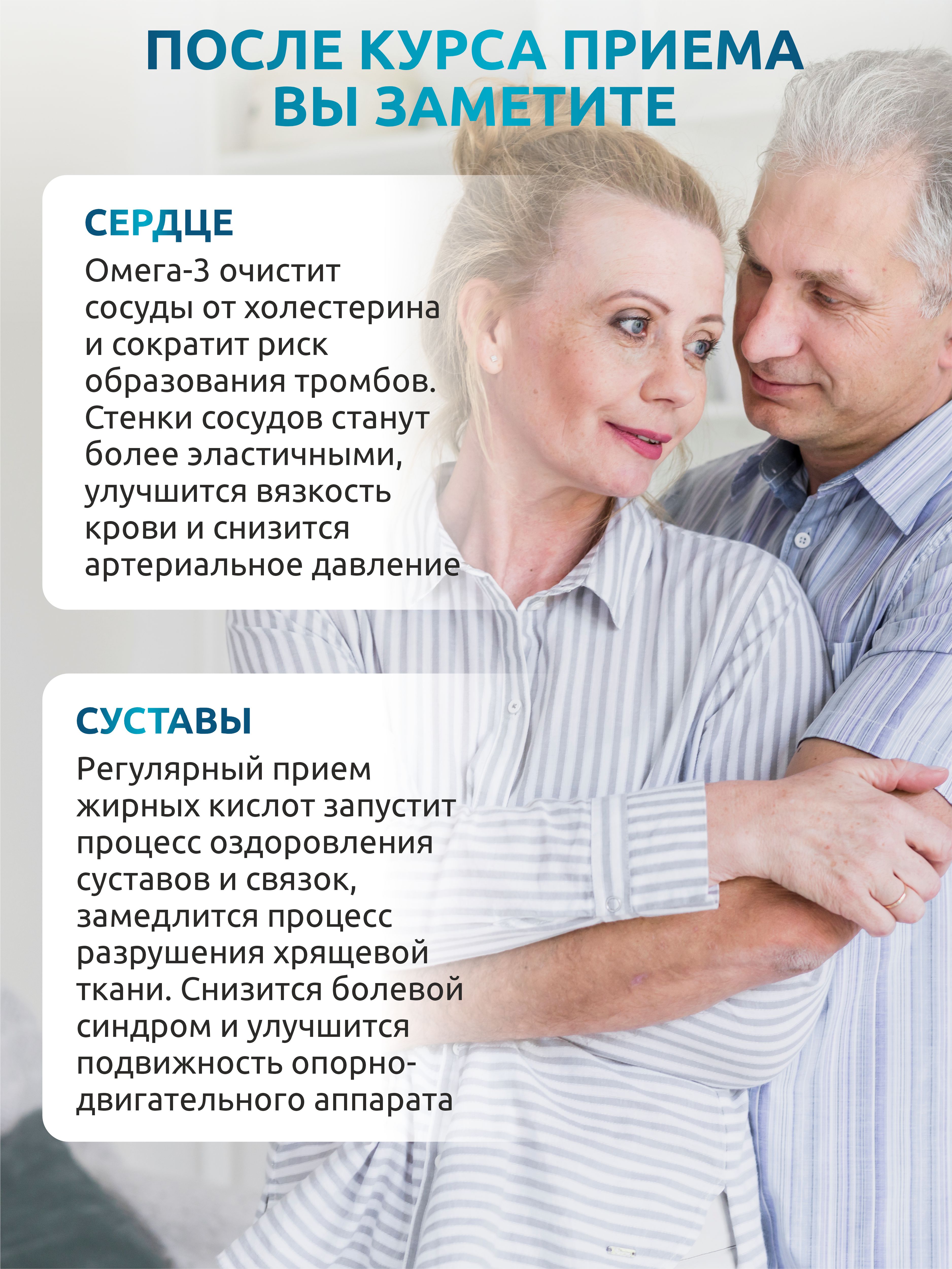 Omega 3 - отличная профилактика сердечно-сосудистых заболеваний. Благодаря жирным кислотам падает уровень “плохого” холестерина и снижается риск атеросклероза сосудов, инфаркта миокарда, инсульта головного мозга. Рыбий жир препятствует развитию тромбозов, нормализует показатели вязкости крови.