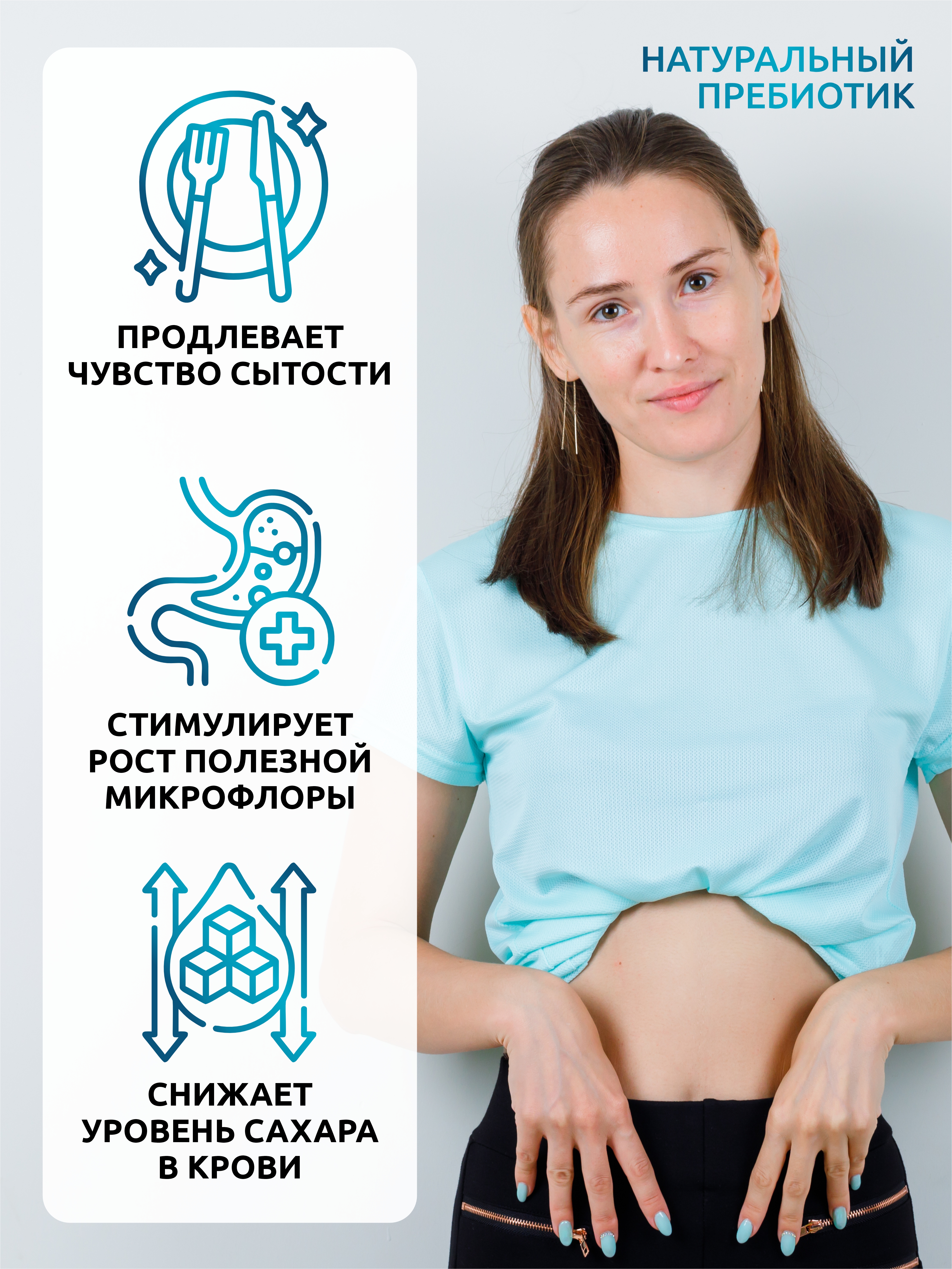 Состав продукта обогащен фруктоолигосахаридами (ФОС) и инулином. Компоненты создают в кишечнике подходящую микрофлору для развития полезных бактерий. Помимо этого действия ФОС укрепляет иммунитет, повышает усвоение кальция, что влияет на укрепление костной системы организма. Инулин помогает регулировать уровень триглицеридов и холестерина в крови, увеличивает выработку ферментов и нормализует пищеварение.