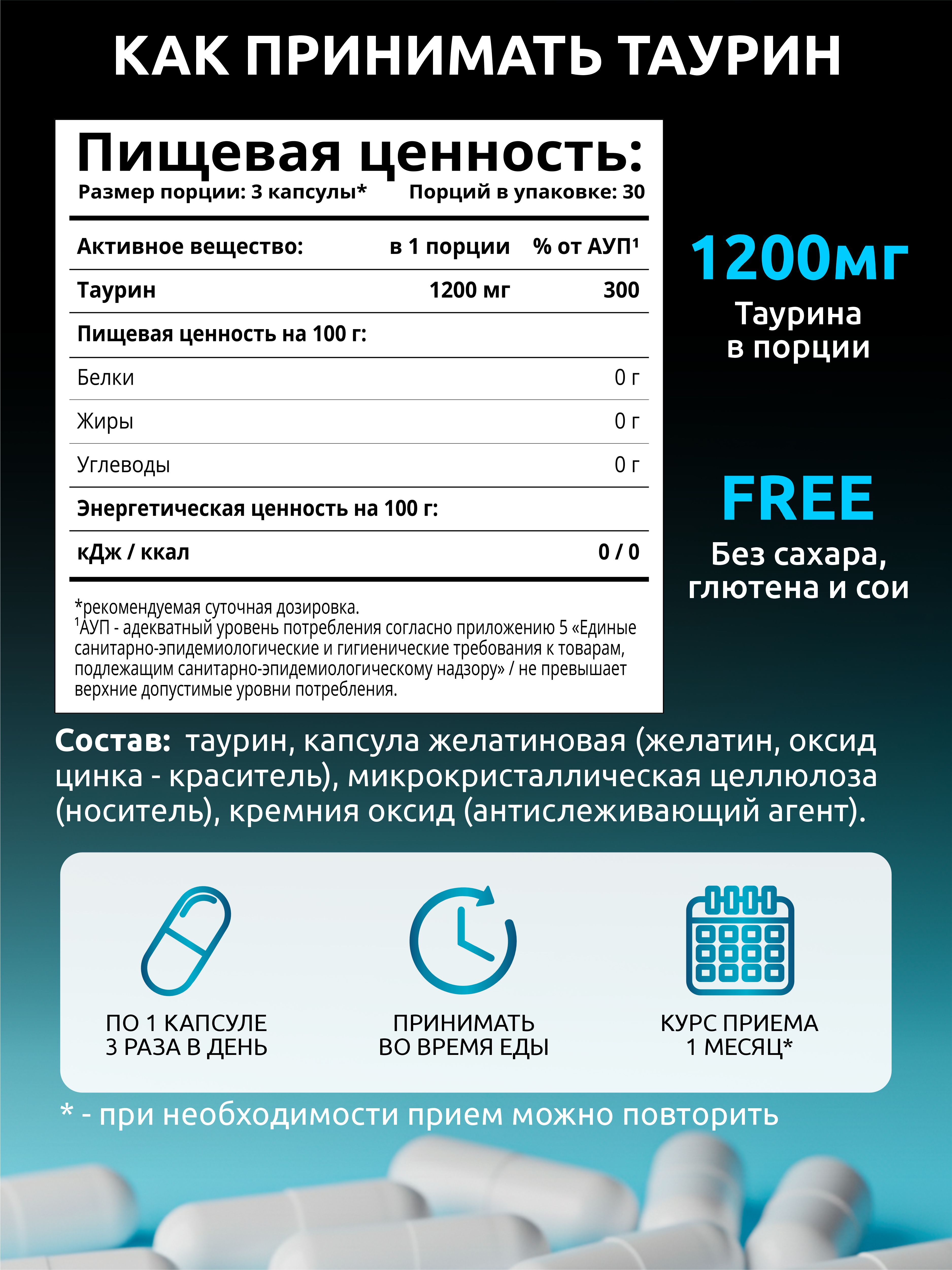 Таурин содержится в каждой клетке и влияет на все процессы жизнедеятельности организма. Дефицит аминокислоты вызывает “тауриновый голод”. Таурин мы получаем с белковой пищей животного происхождения. Если в рационе ее недостаточно или нет совсем, особенно важно принимать таурин в виде добавки.
