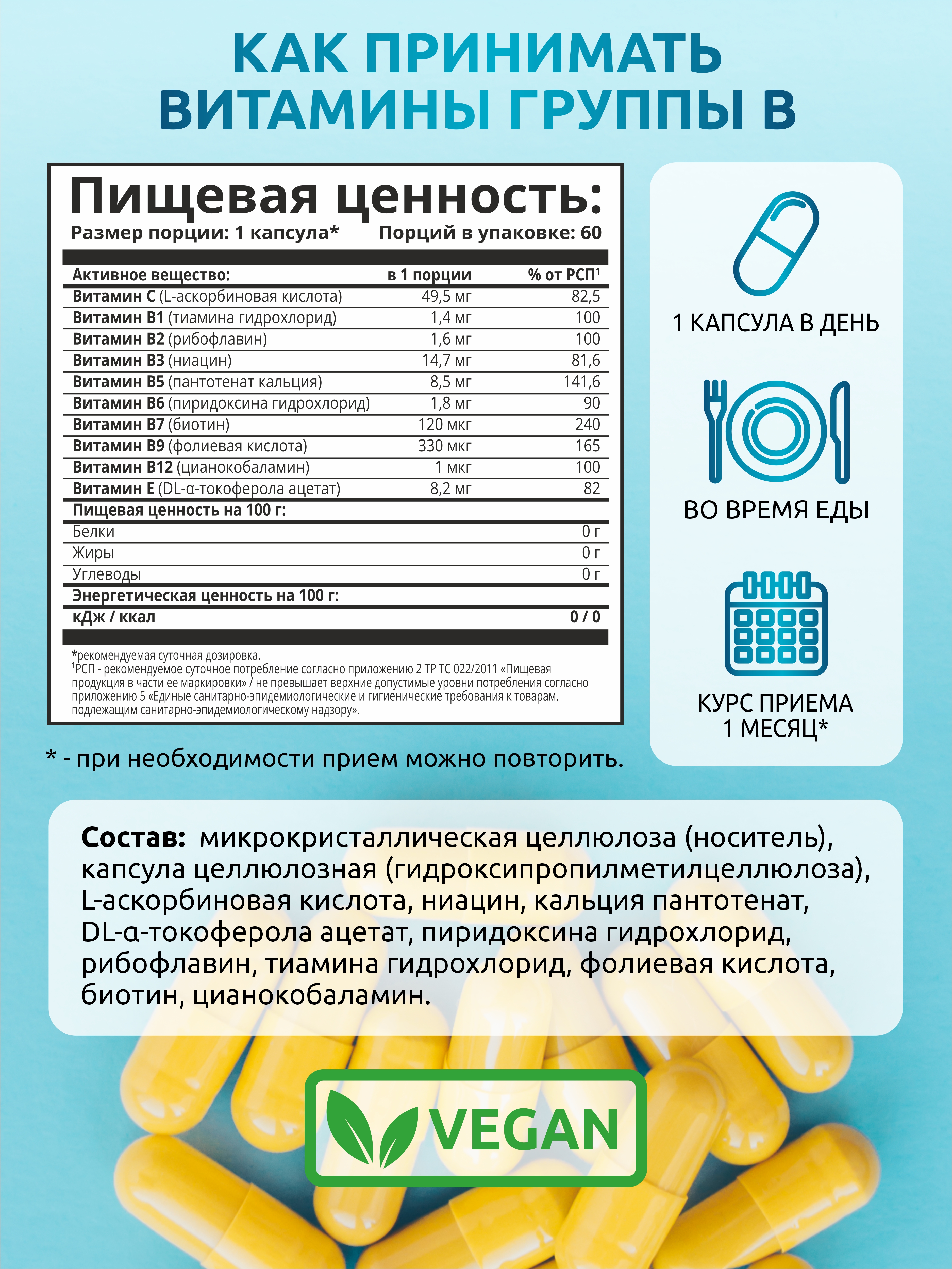 Курсовой прием позволяет восполнить дефицит витаминов группы b. Одна капсула содержит оптимальную суточную дозировку компонентов.