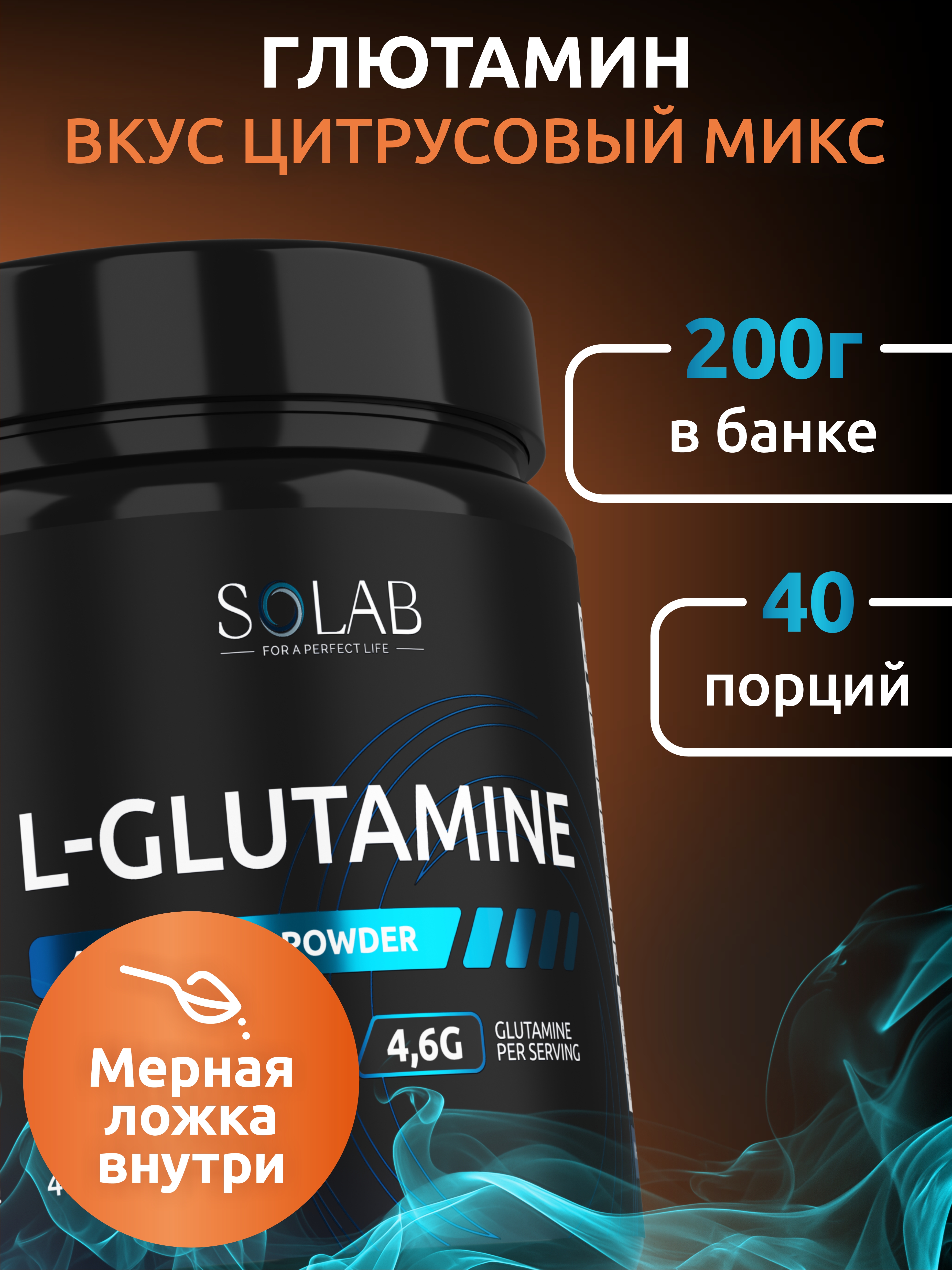 SOLAB / Глютамин Вкус Цитрусовый микс, 200 гр