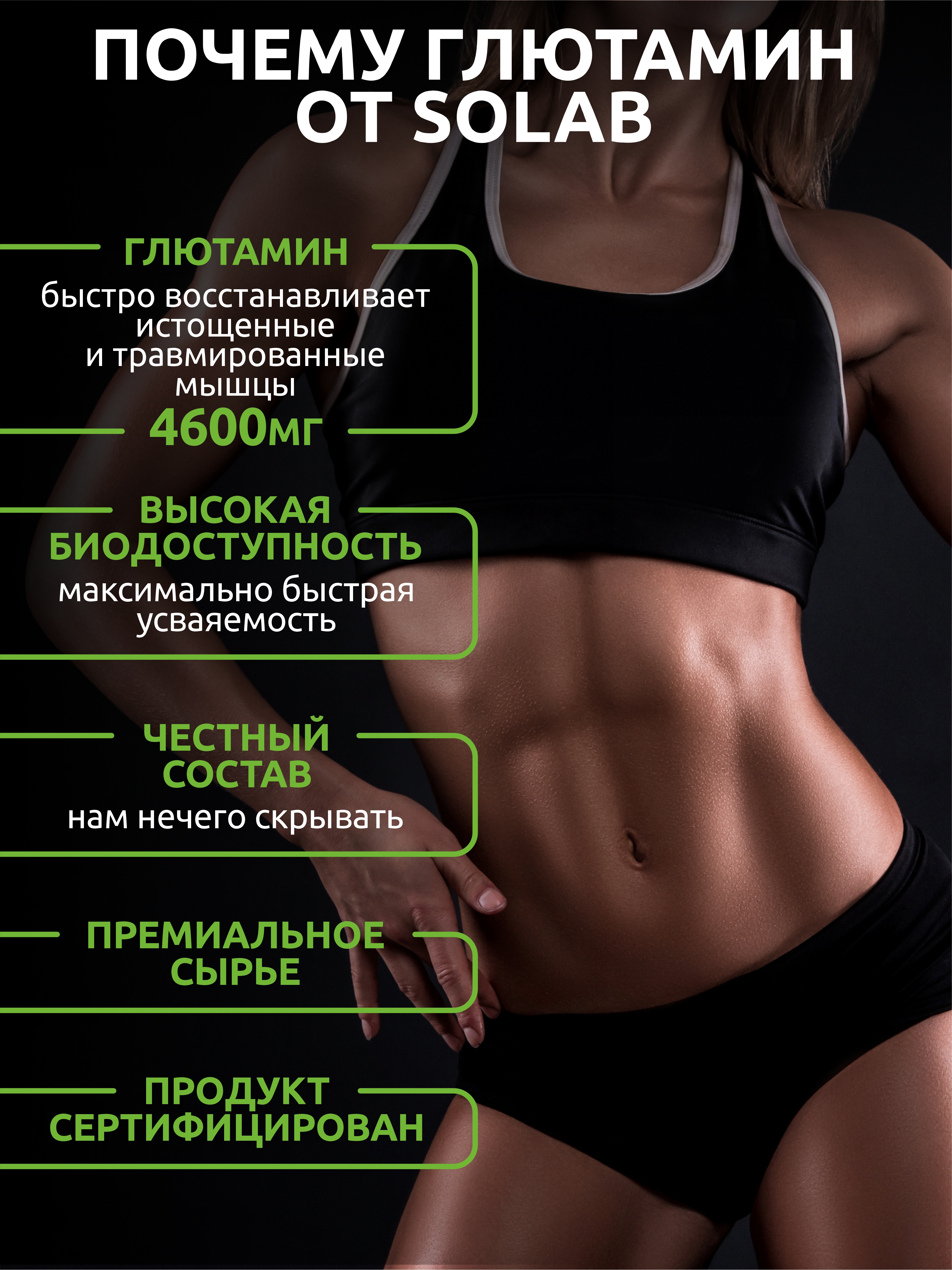 Усталость после тренировок? Мышцы болят, силы на нуле? Попробуй L-глютамин от SOLAB для быстрого восстановления и энергии.