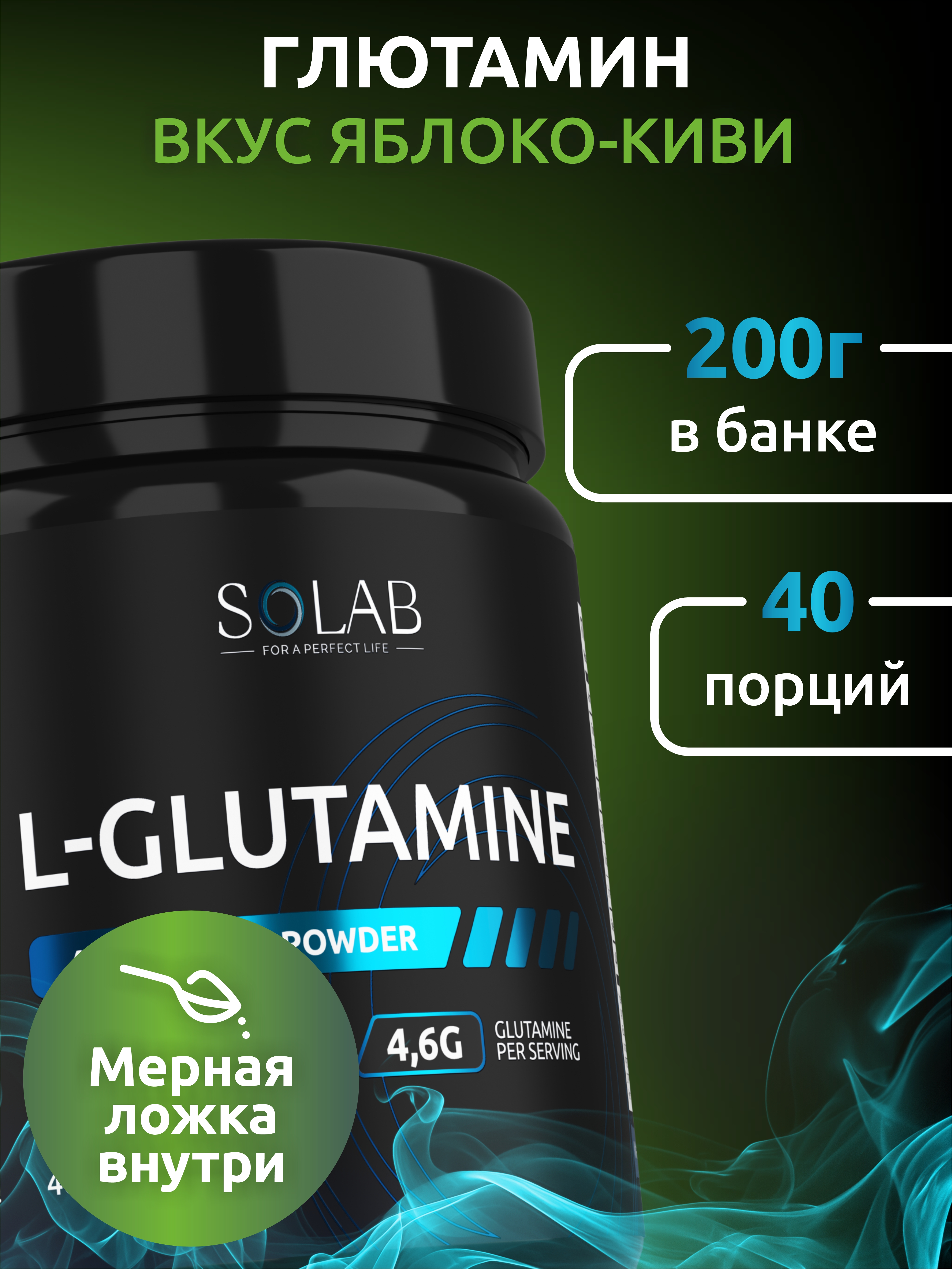 SOLAB / Глютамин Вкус Яблоко-киви, 200 гр