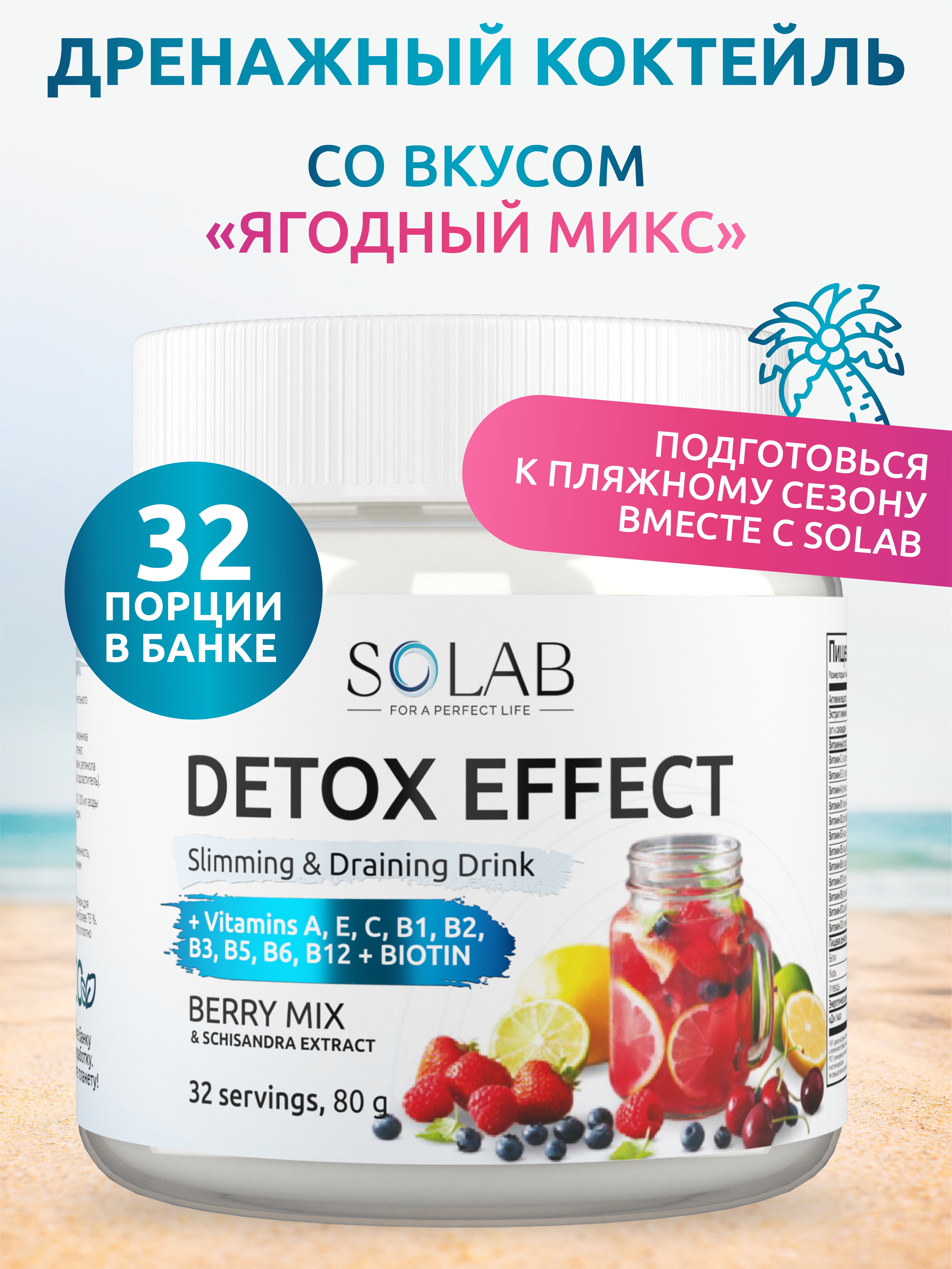 SOLAB / Напиток растворимый. Detox Slim Effect. Детокс Эффект со вкусом Ягодный микс , 32 порции