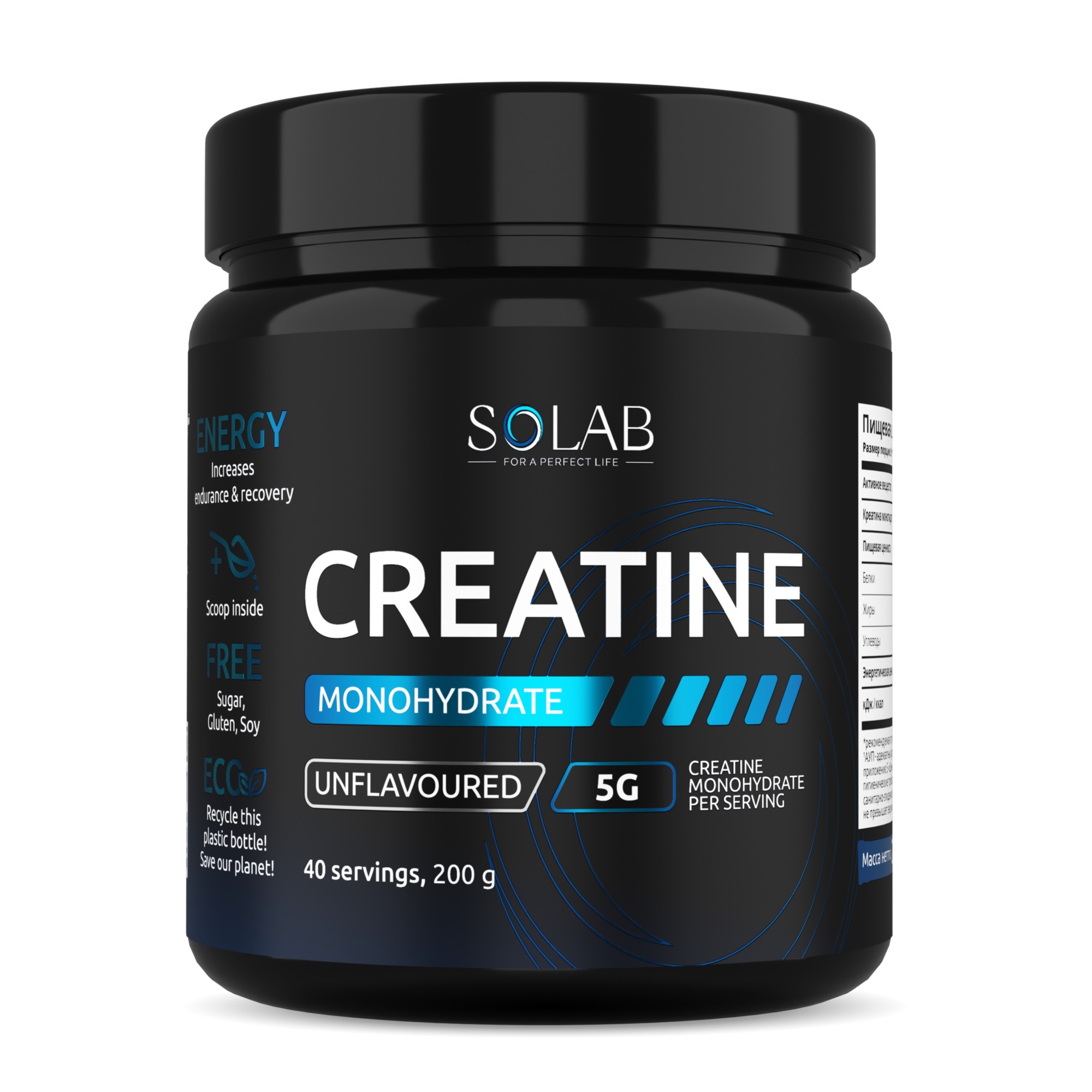SOLAB / Креатин моногидрат, Creatine Monohydrate. Вкус Энергетик, 200 гр. 30 порций