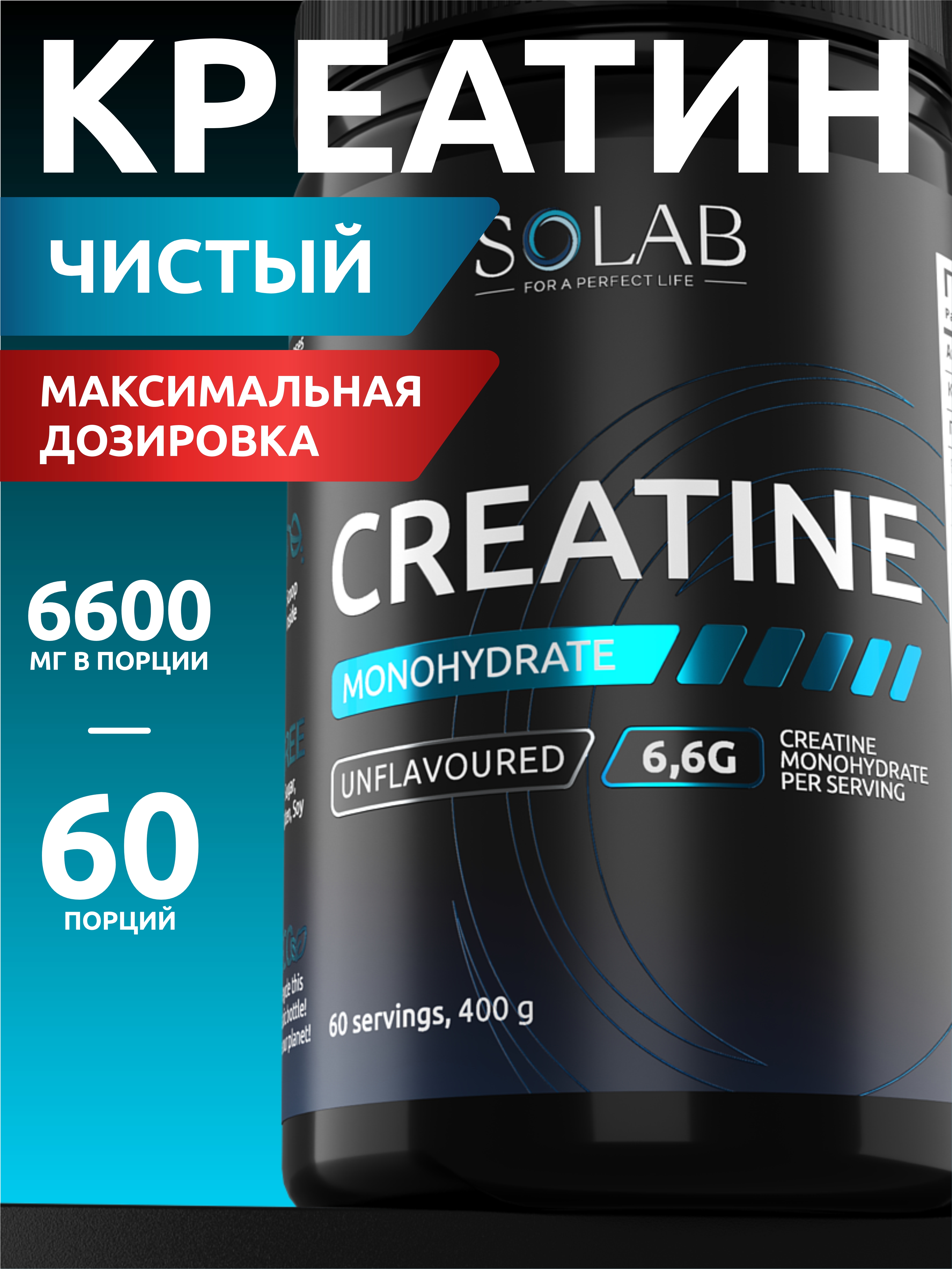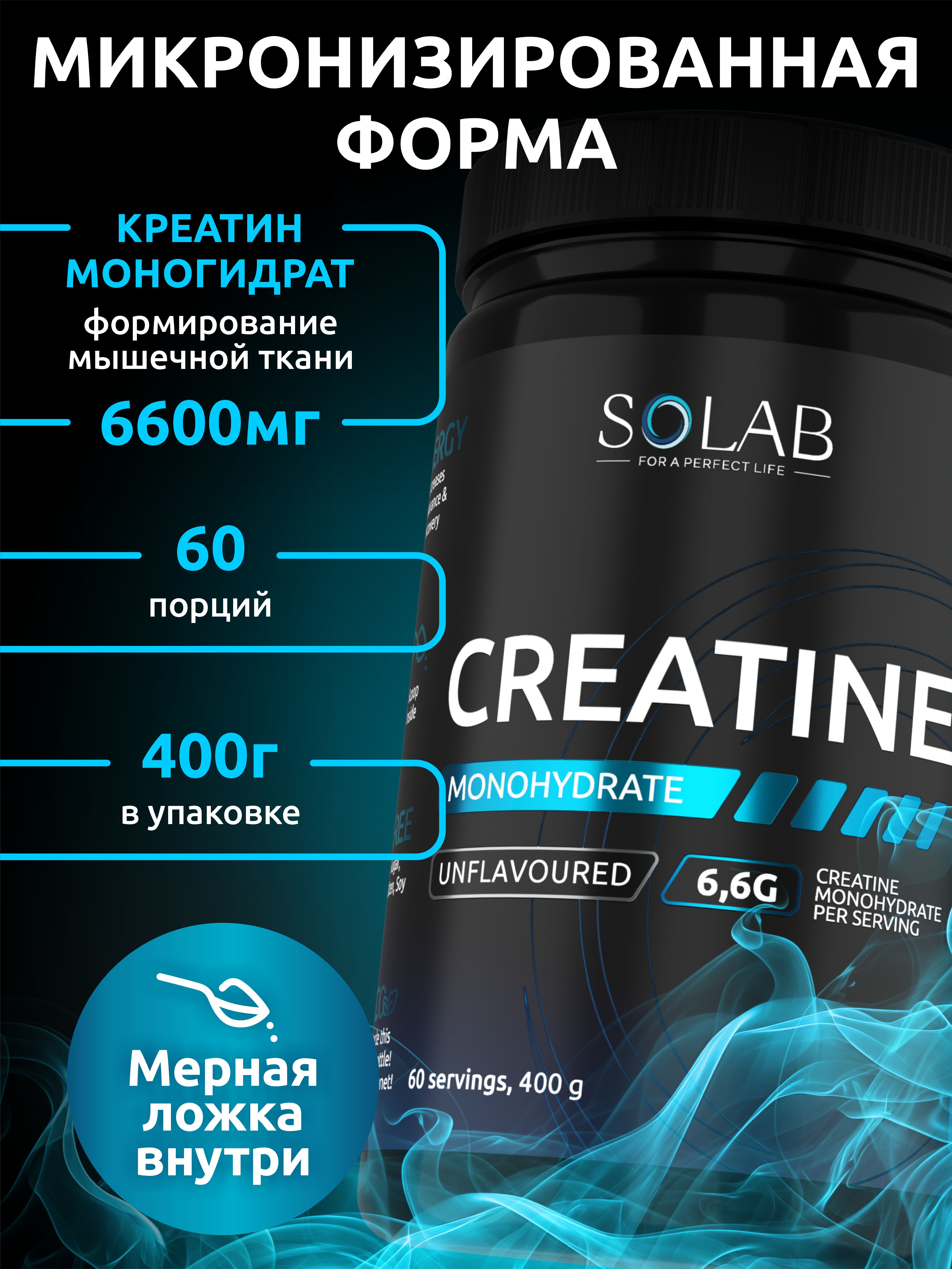 SOLAB / Креатин моногидрат. Без вкуса, 400 гр. 60 порций
