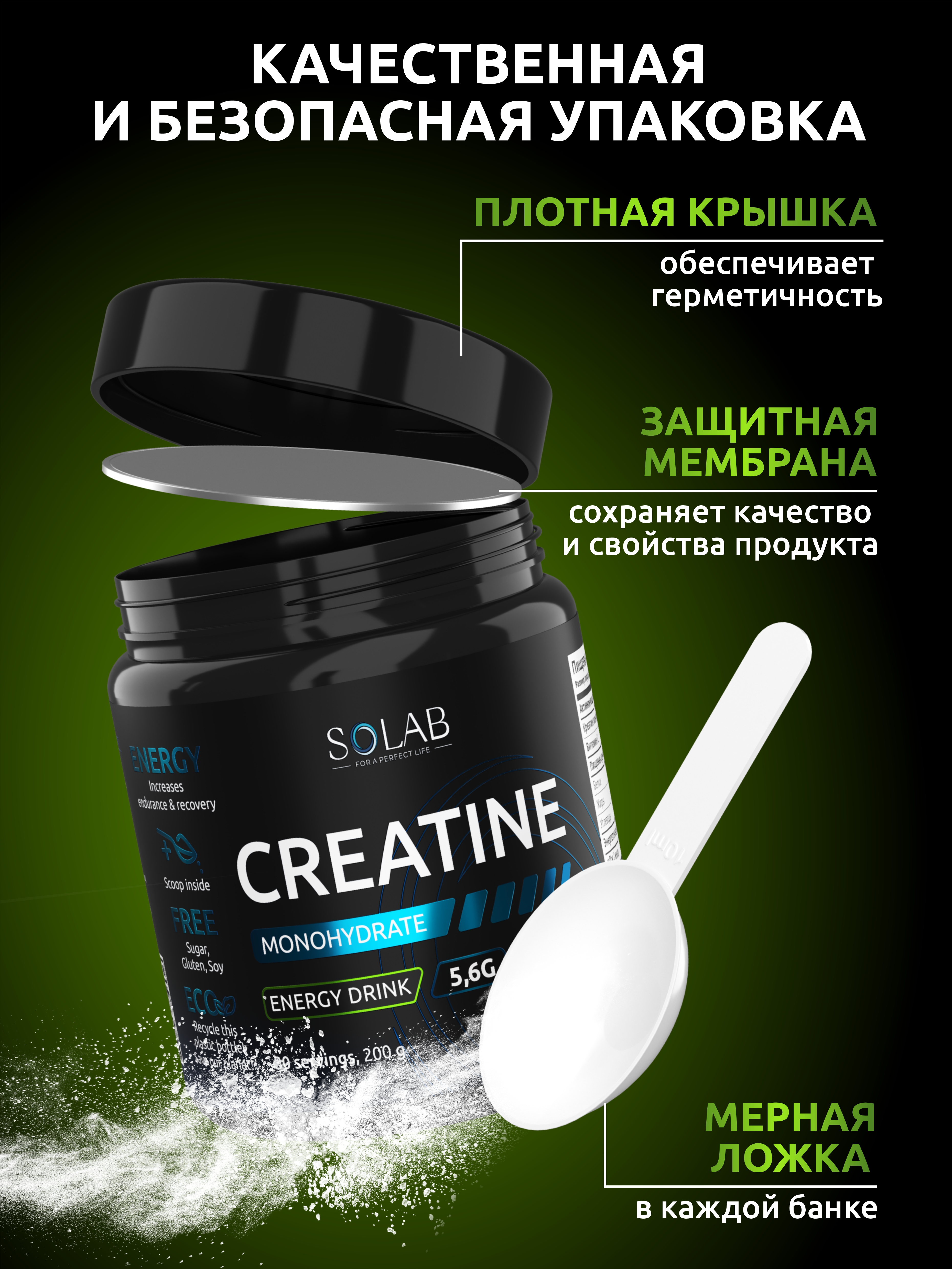SOLAB / Креатин моногидрат, Creatine Monohydrate. Вкус Энергетик, 200 гр. 30 порций