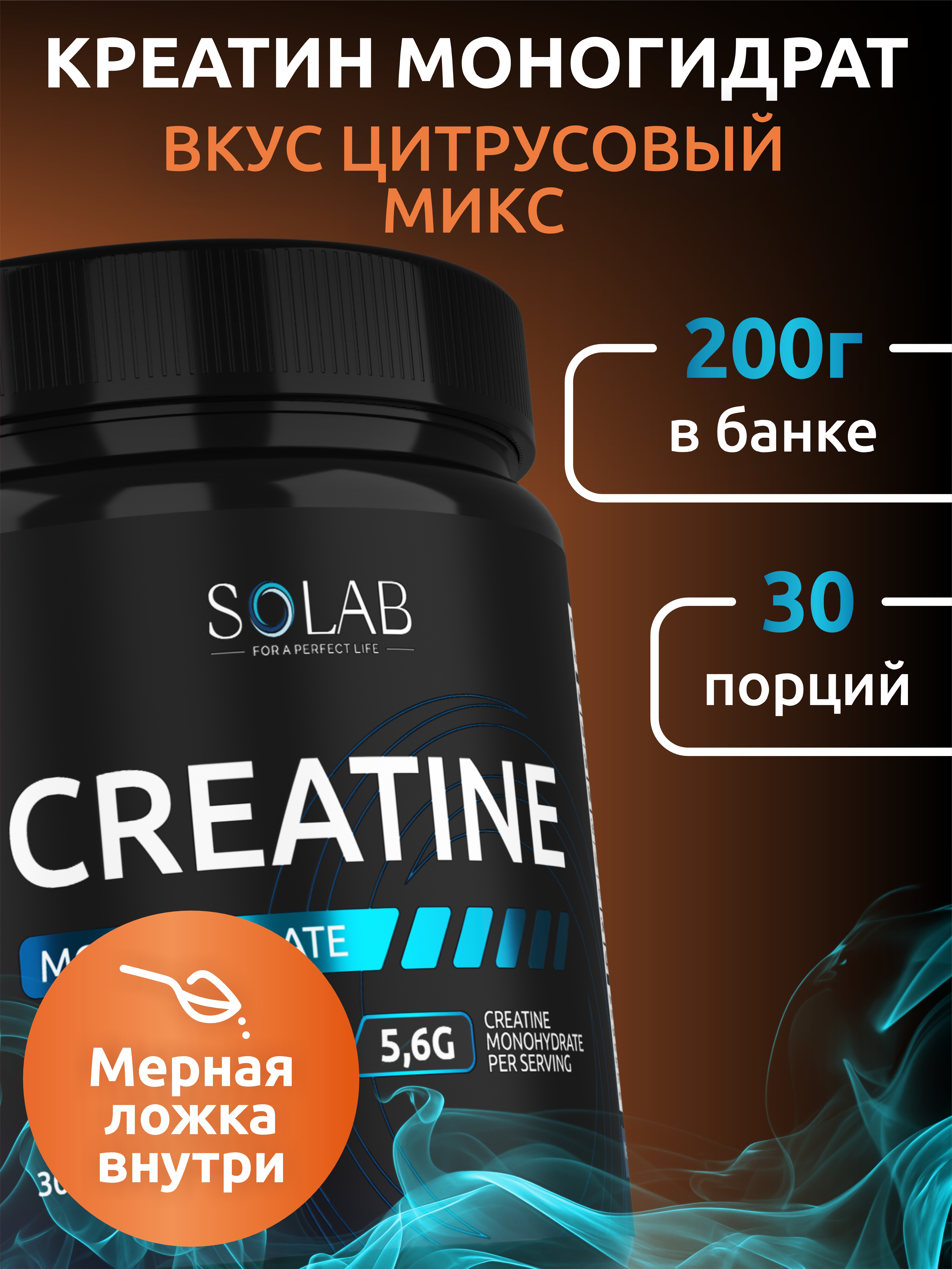 SOLAB / Креатин моногидрат, Creatine Monohydrate. Вкус Цитрусовый микс, 200 гр. 30 порций