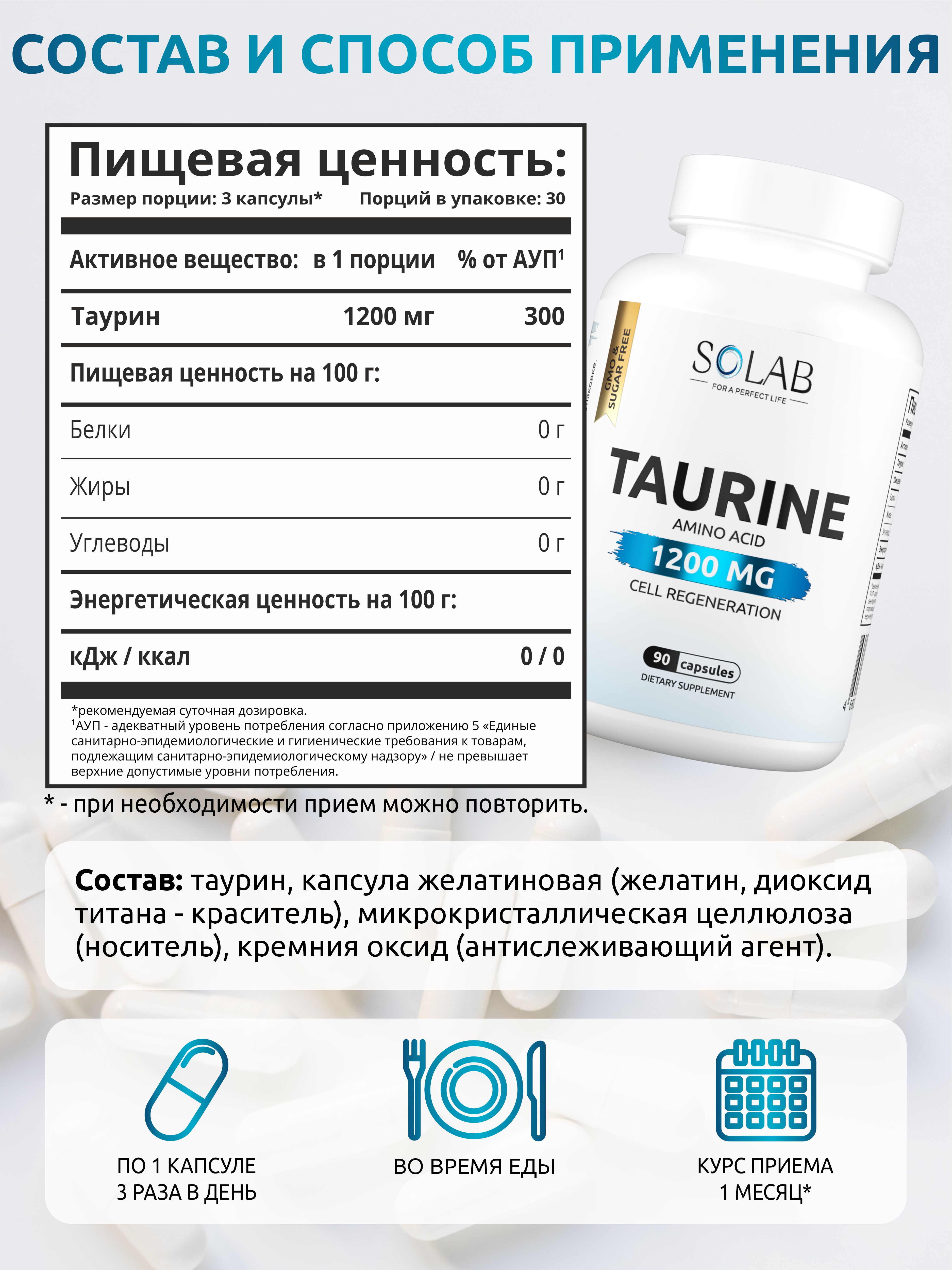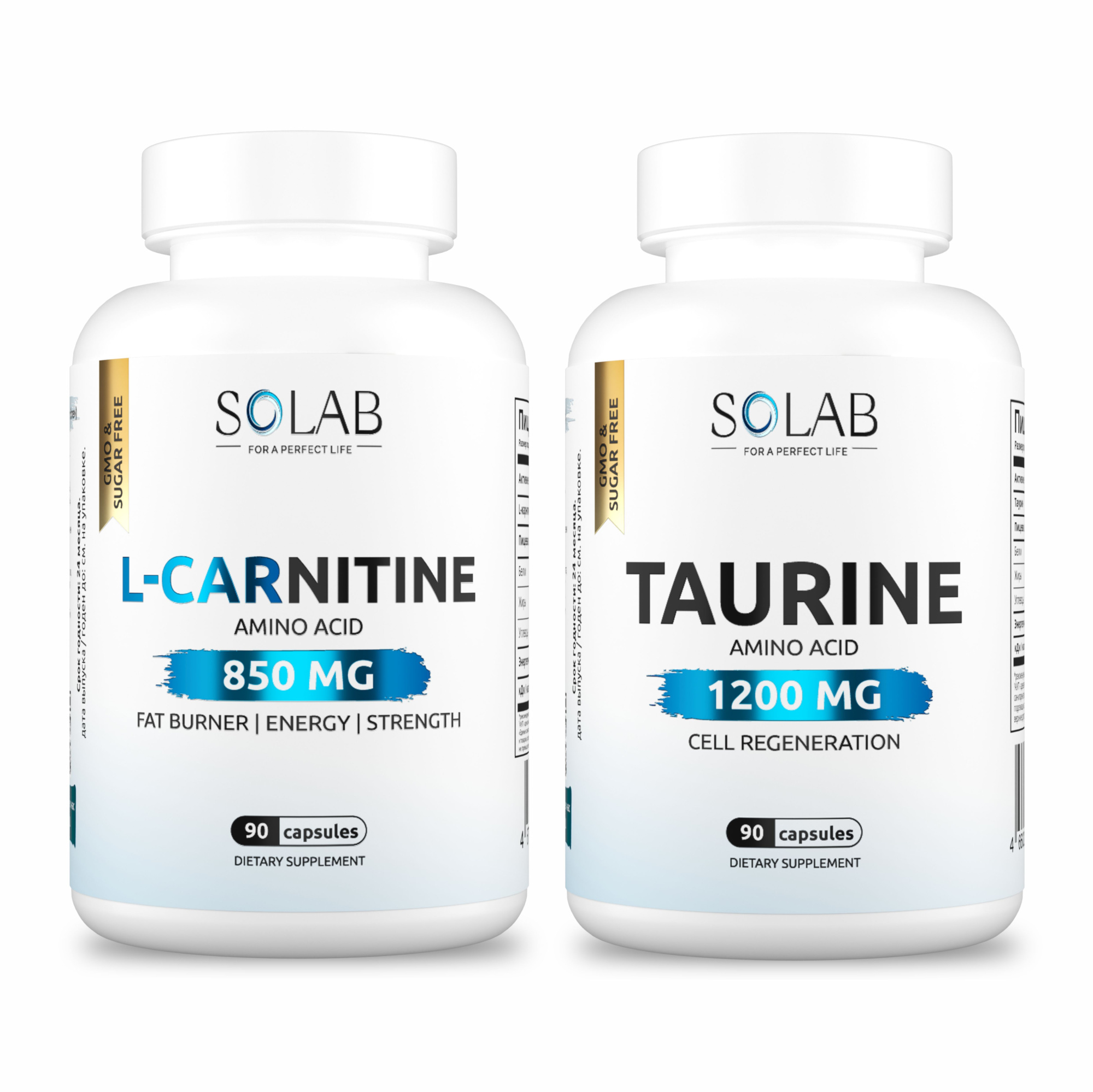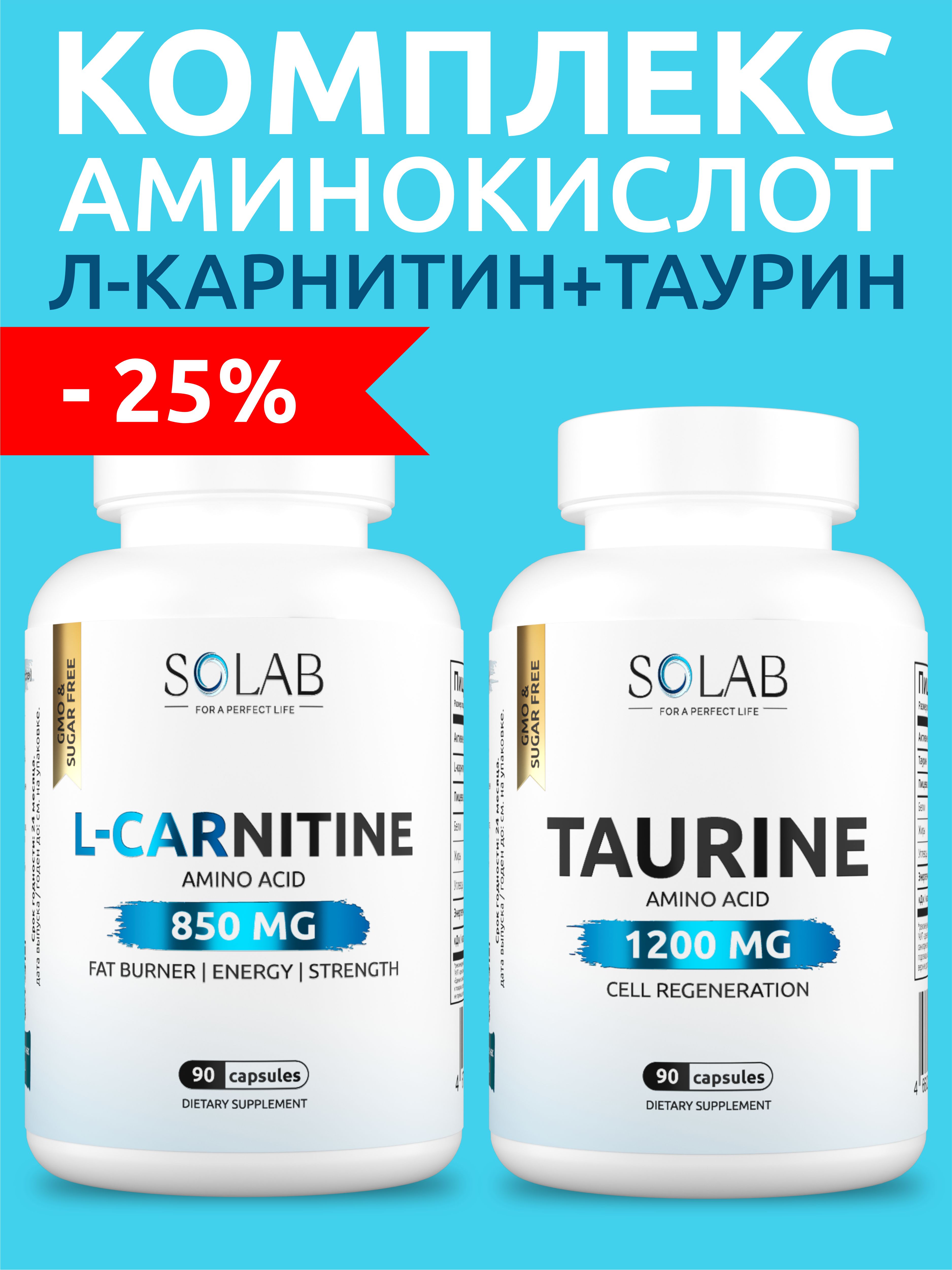 SOLAB / Набор: Таурин 1200 мг, 90 капсул+ L-Карнитин, 90 капсул