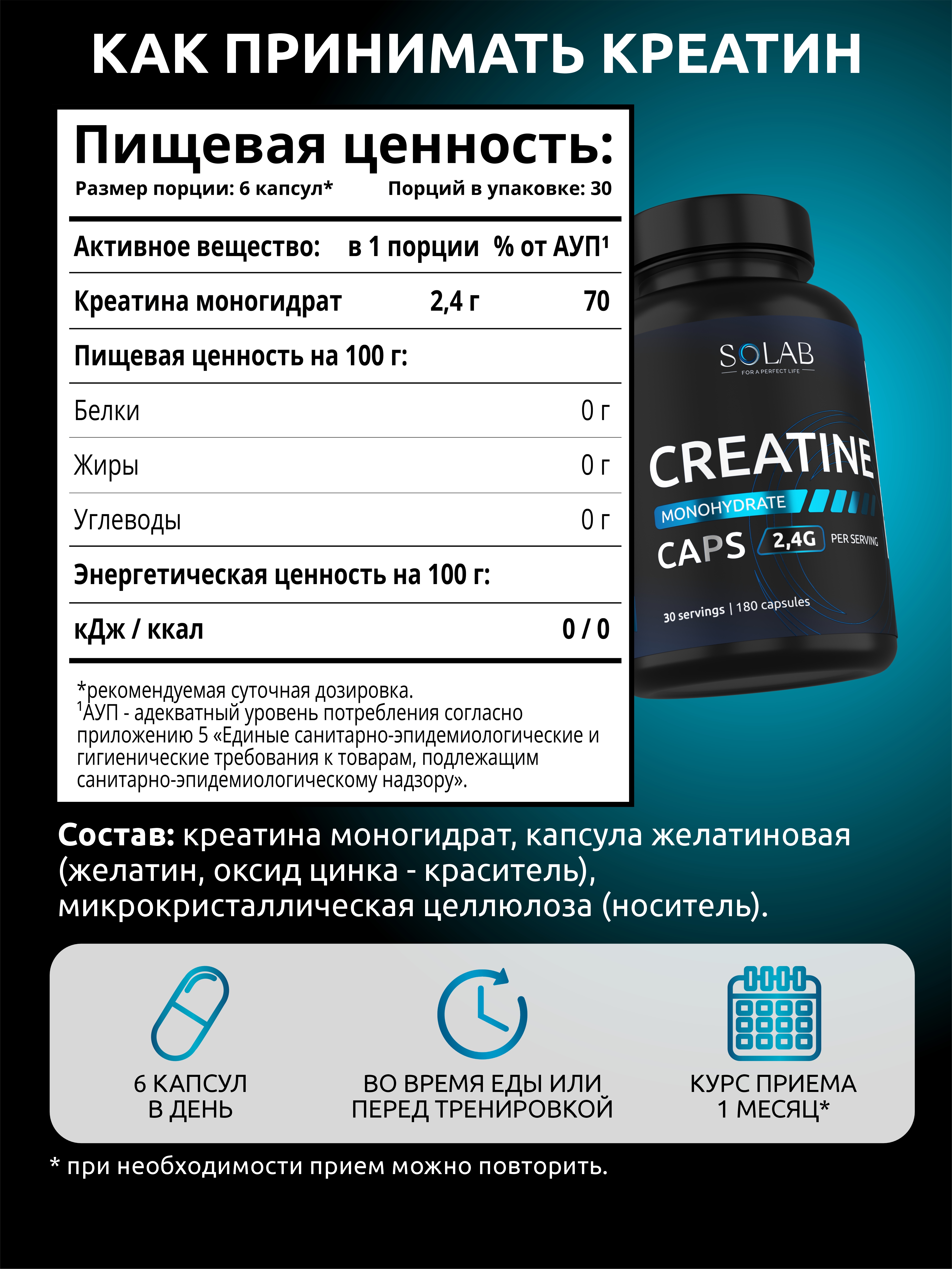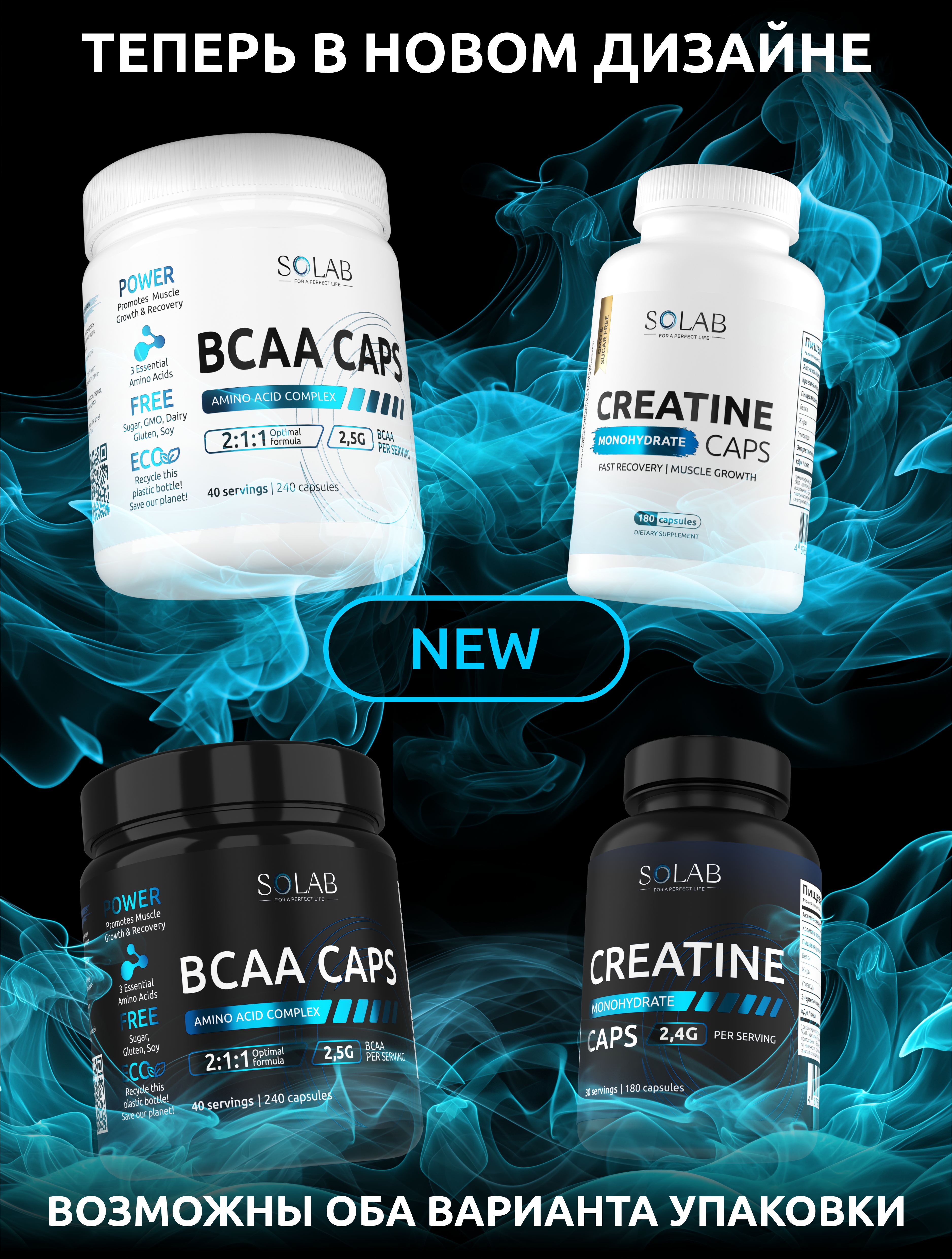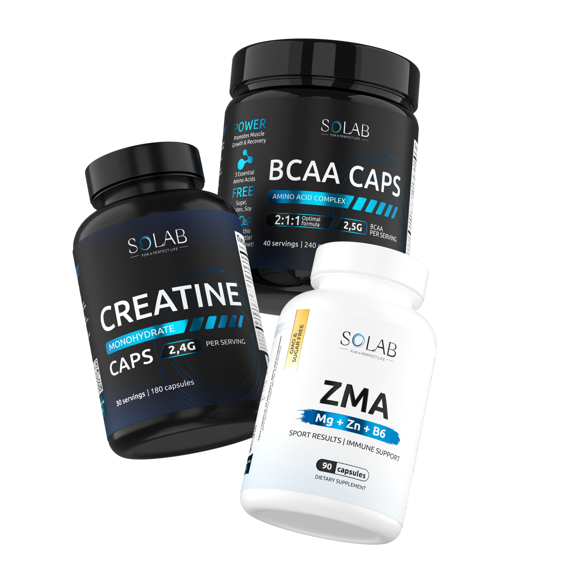 SOLAB / Набор витаминов. Креатин 180 капсул + ВСАА 2:1:1 240 капсул + ZMA 90 капсул