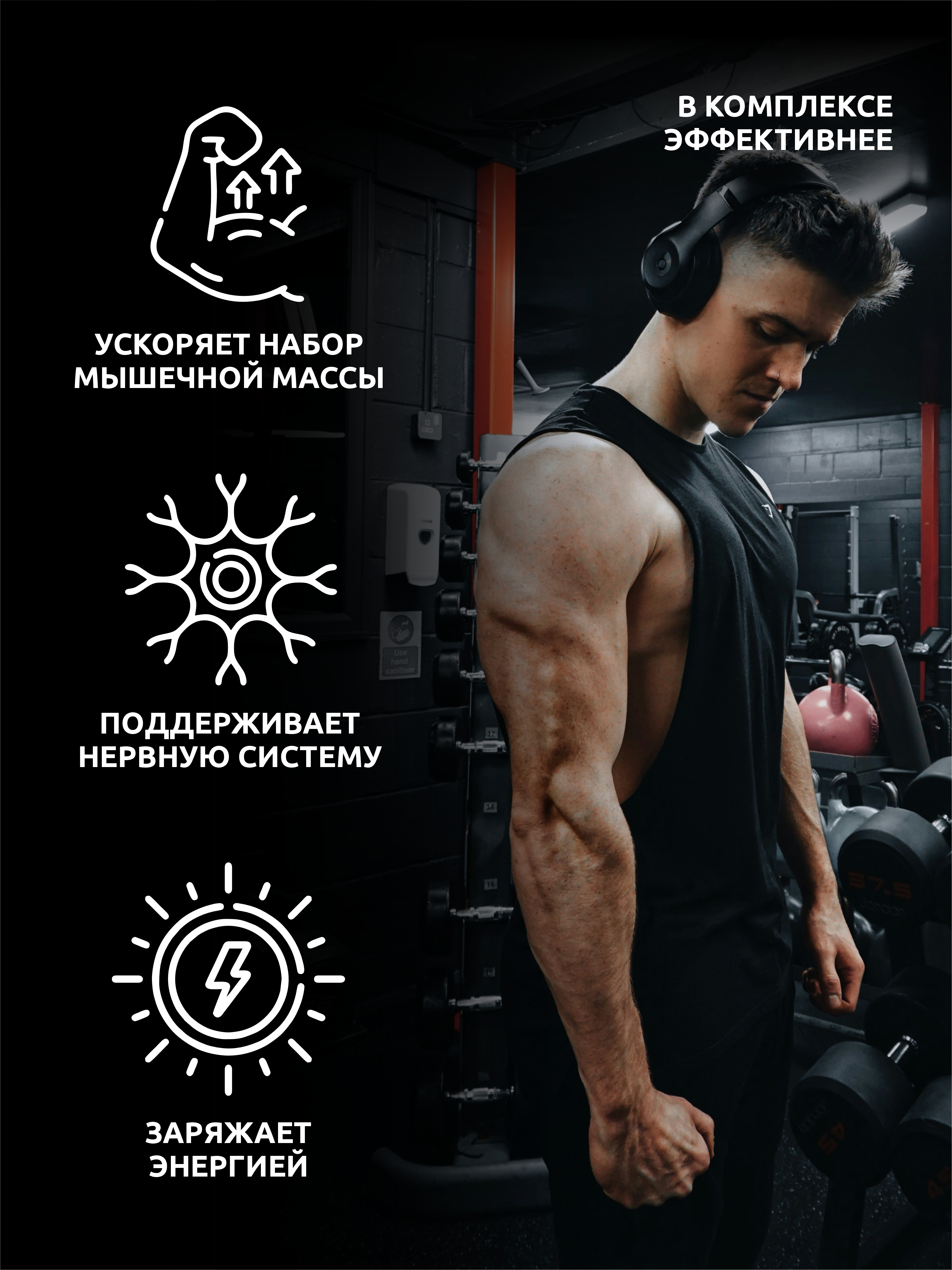 Креатин поможет зарядиться энергией перед тренировкой, придаст сил и выносливости. Обеспечивает поддержку сердечно-сосудистой системы, ускоряет набор мышечной массы и процесс моделирования рельефного тела.