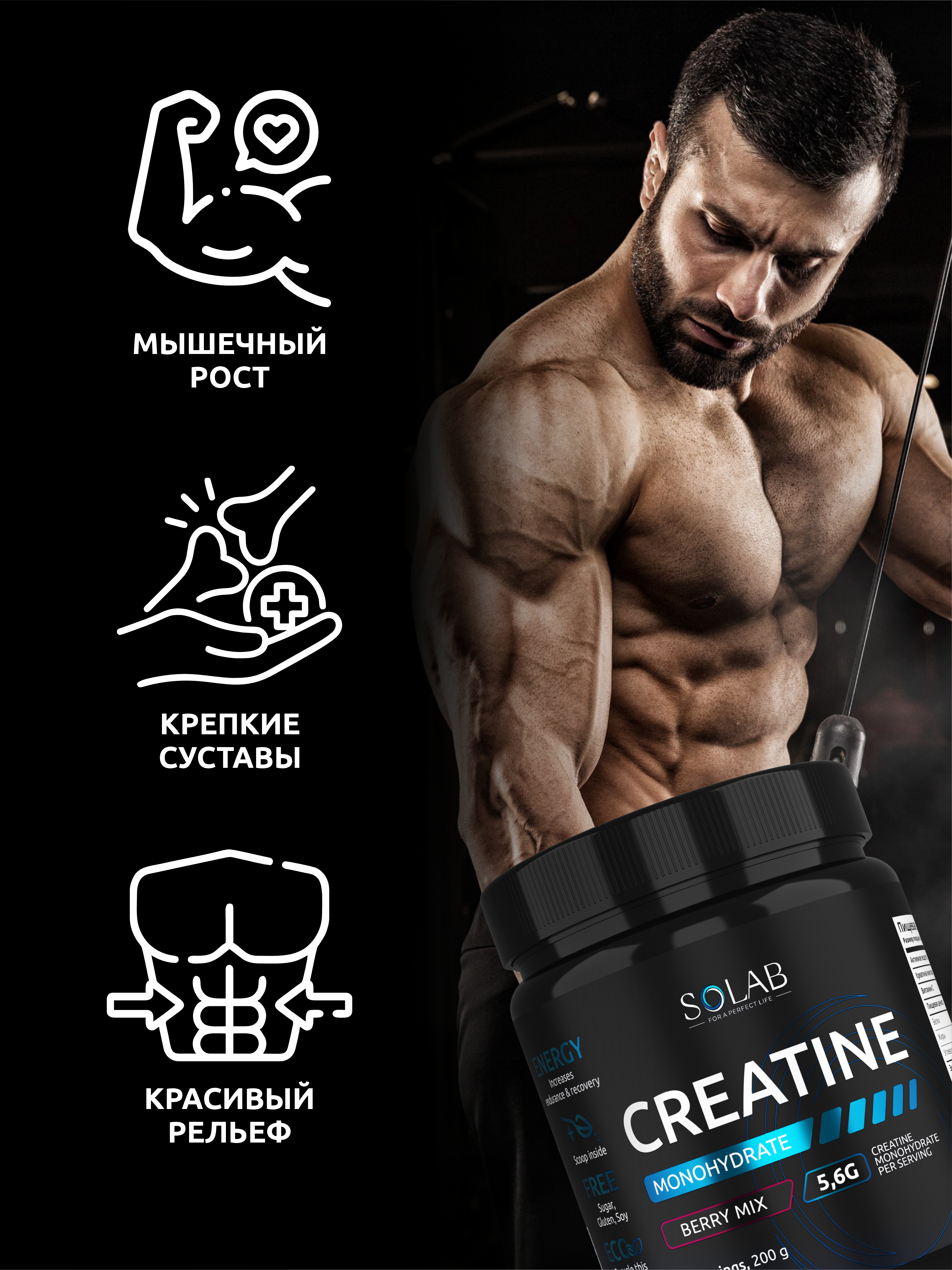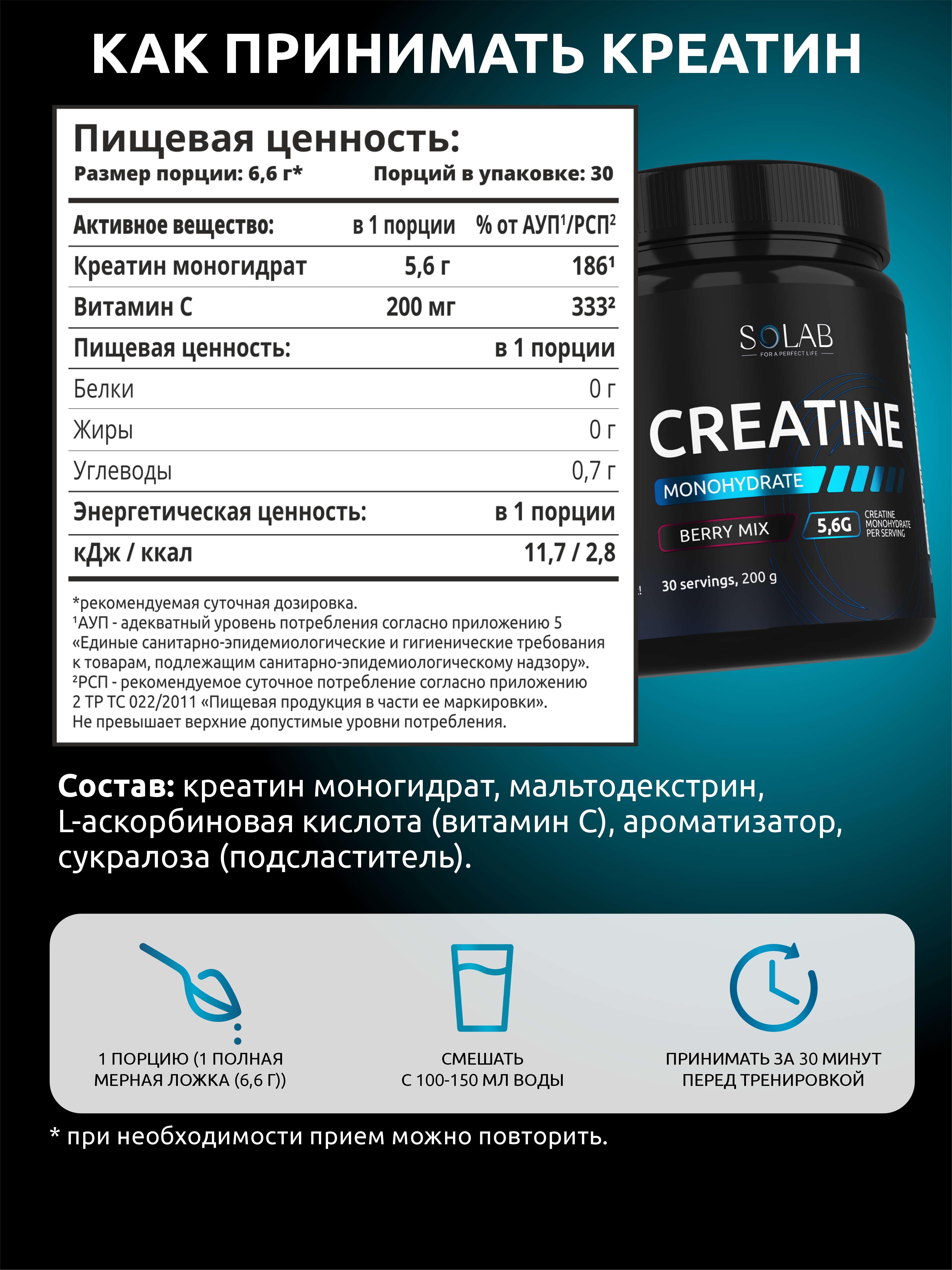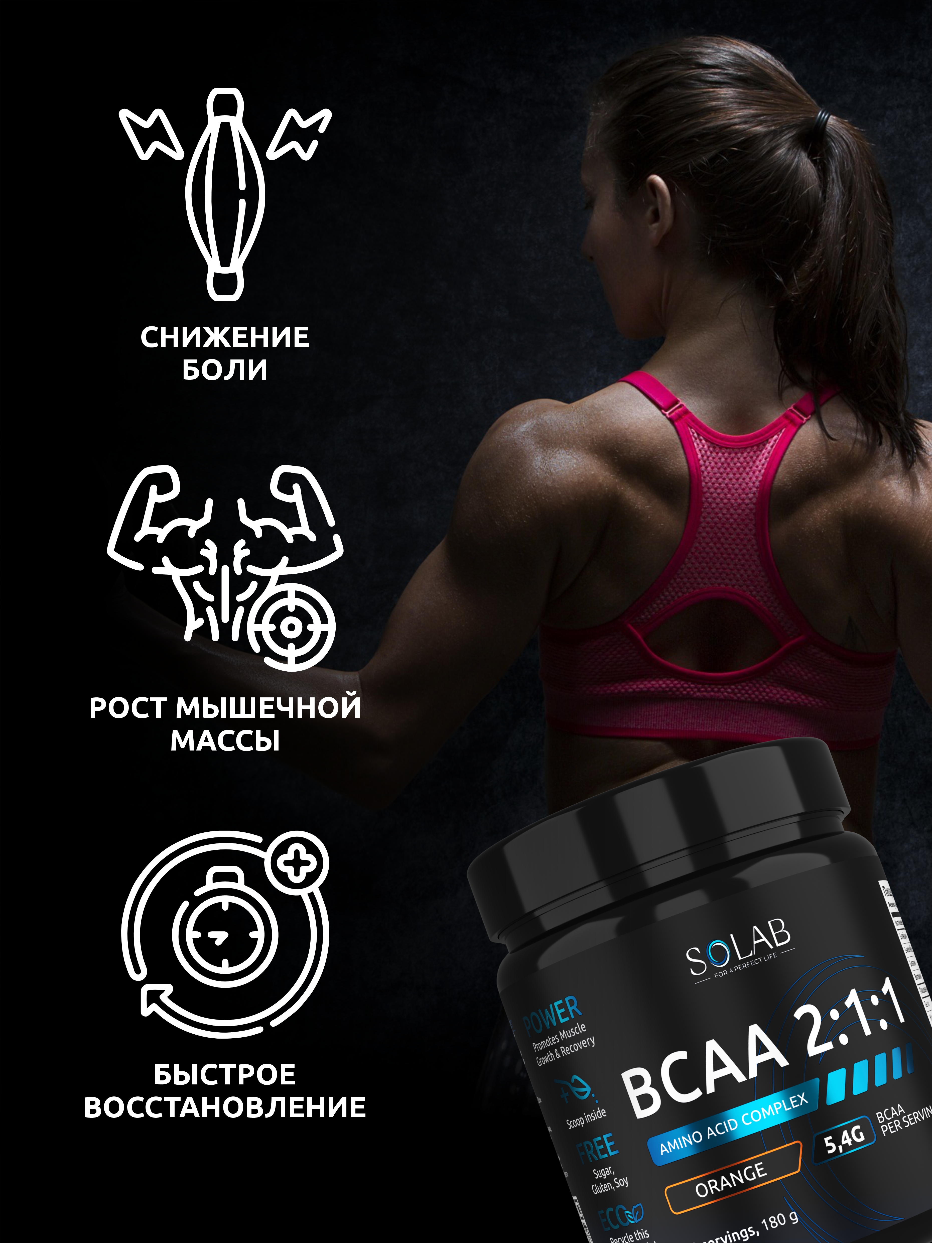 SOLAB / Набор витаминов. Креатин вкус Лесные ягоды, 200г + Предтренировочный комплекс вкус Фруктовый пунш, 210г + ВСАА 2:1:1 вкус Апельсин, 180г