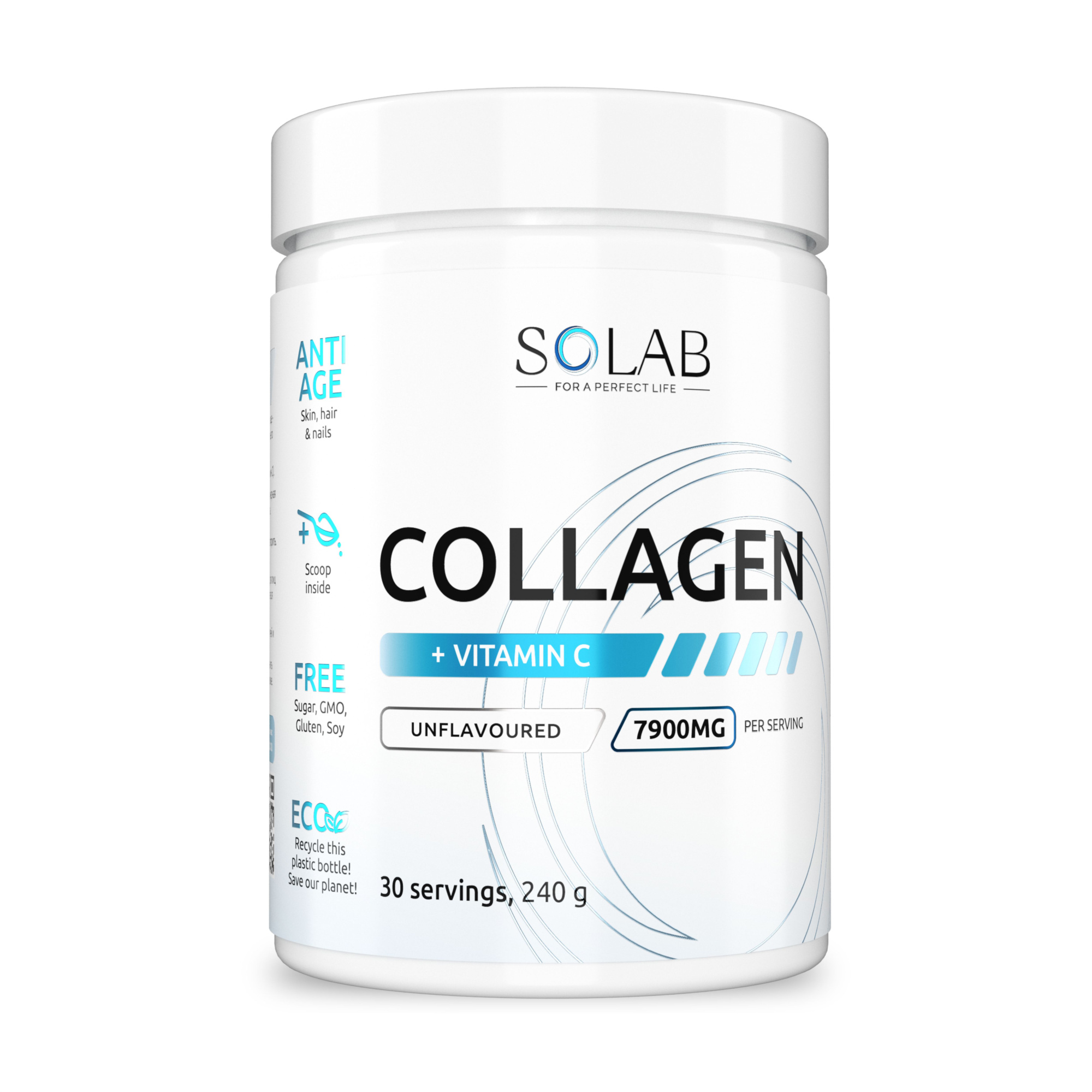 SOLAB / Гидролизованный коллаген с витамином С, 240г,  30 порций