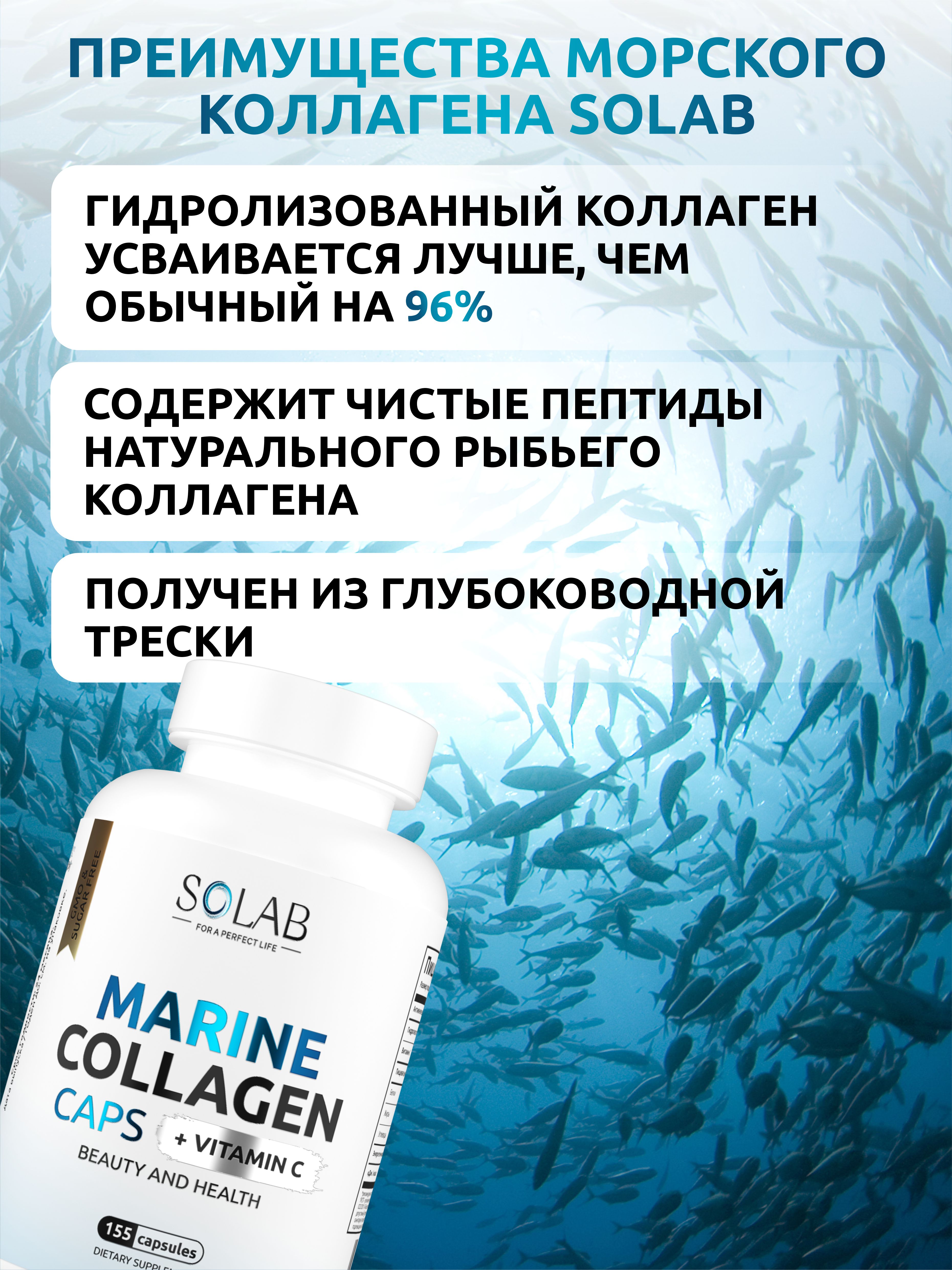 SOLAB / Коллаген морской в капсулах + Витамин С, 155 капсул